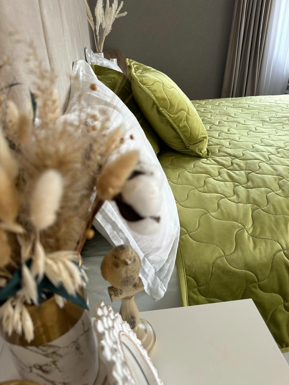 Бархатное покрывало SOPHIA, размер 240x220 см, цвет оливковый