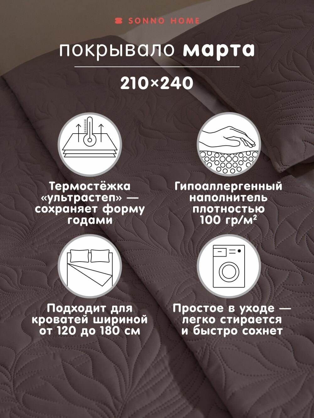 Sonno Home Покрывало ультрастеп на кровать, диван 210х240 Марта, Микрофибра, цвет Капучино интересное: