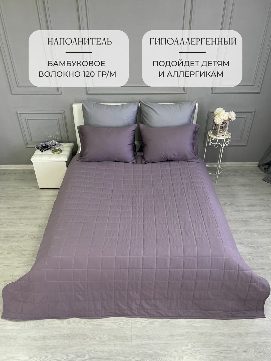 Купить Покрывало на кровать 210х225 см, Ушки Подушки, серо-фиолетовое, двухстороннее, стеганое