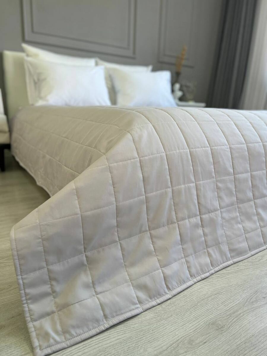 Покрывало на кровать 210х225 см, Ушки Подушки, светло-бежевое, двухстороннее, стеганое