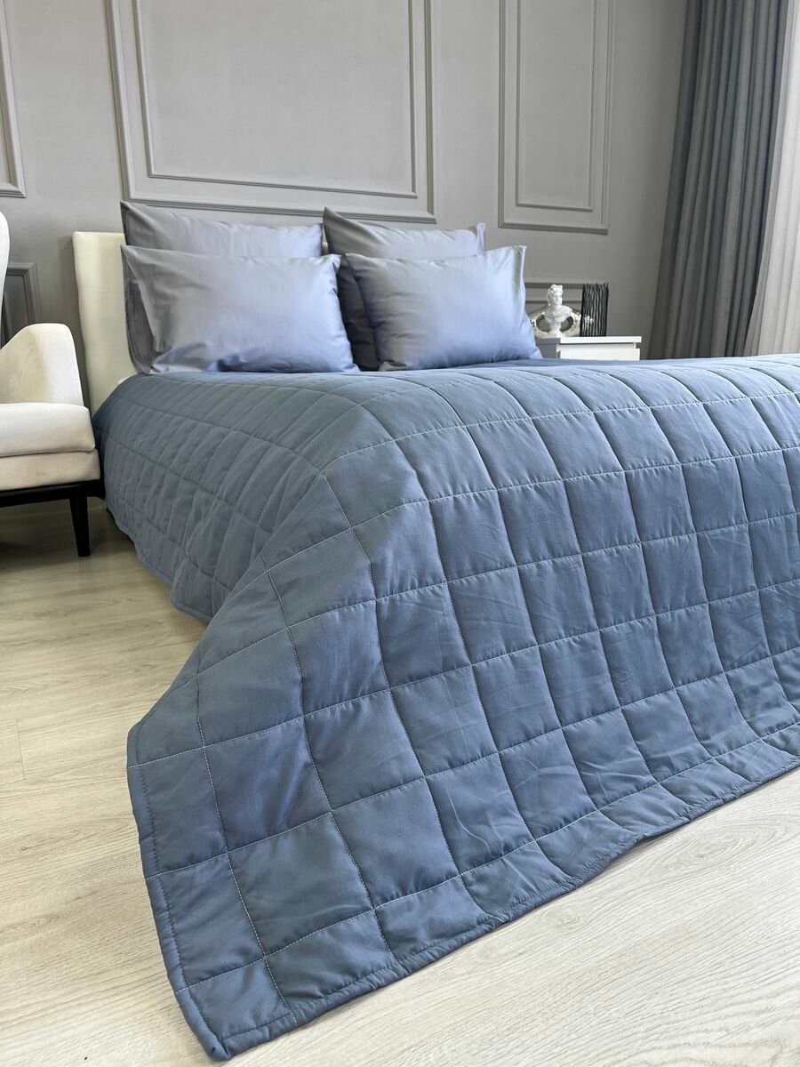 Покрывало на кровать 210х225 см, Ушки Подушки, голубовато-серое двухстороннее, стеганое
