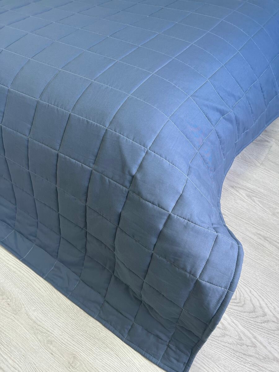 Покрывало на кровать и диван 210х240 см стеганое, синее, Ушки Подушки