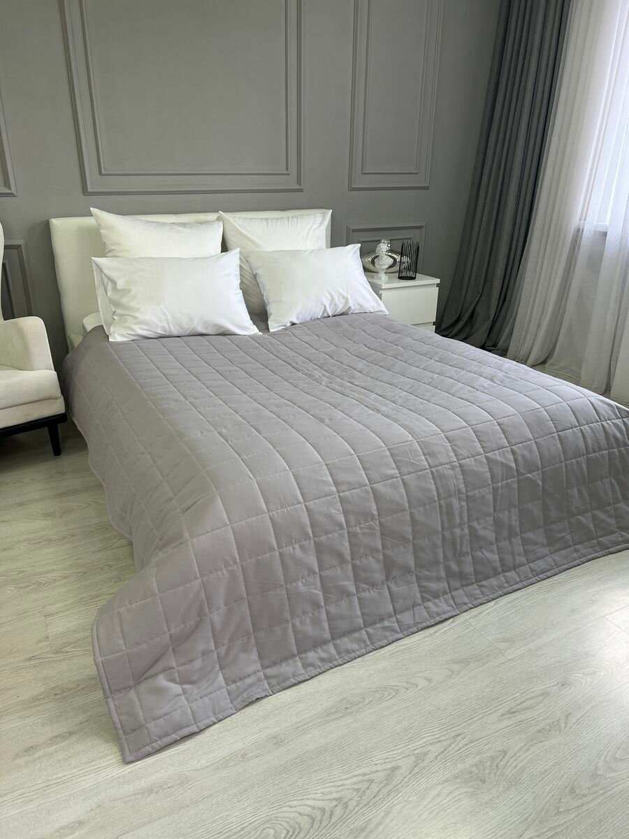 Покрывало на кровать и диван 210х240 см стеганое, светло-серое, Ушки Подушки