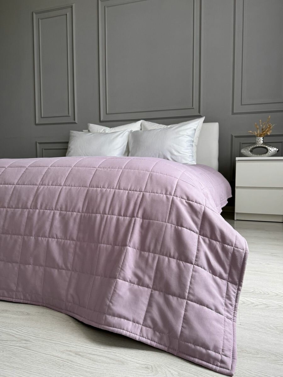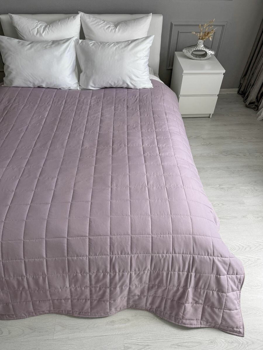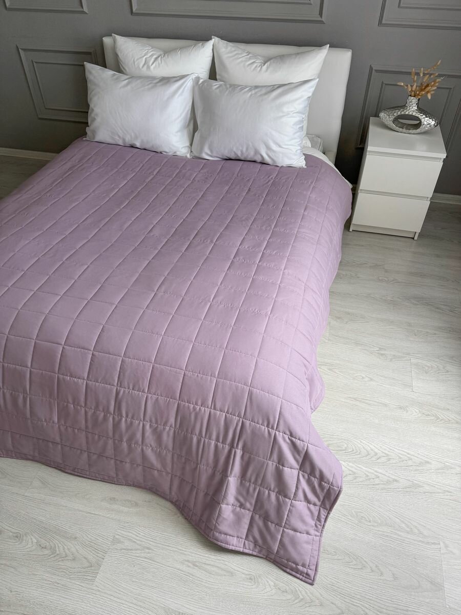 Купить Покрывало на кровать 210х225 см, Ушки Подушки, лавандовое, двухстороннее, стеганое