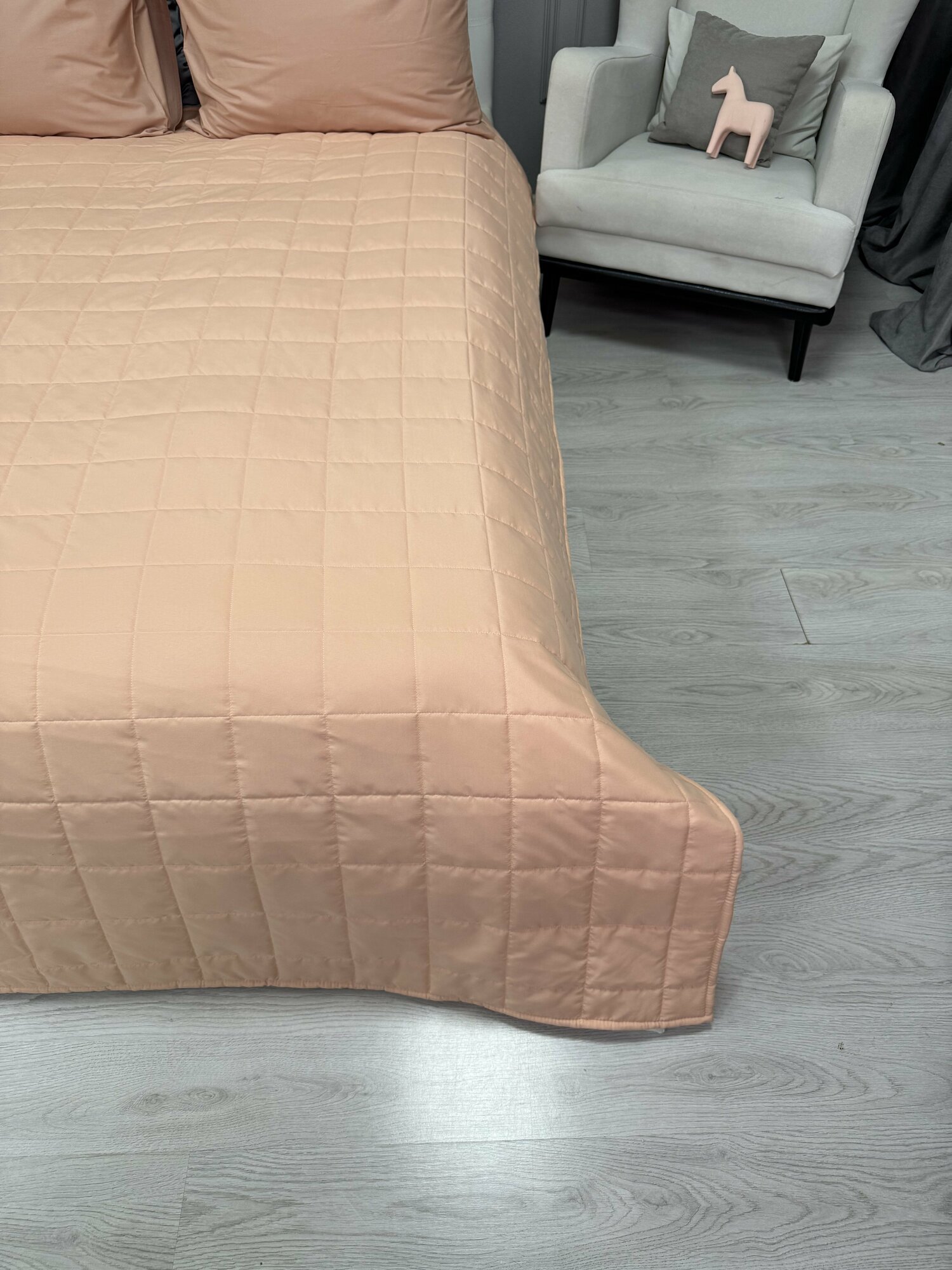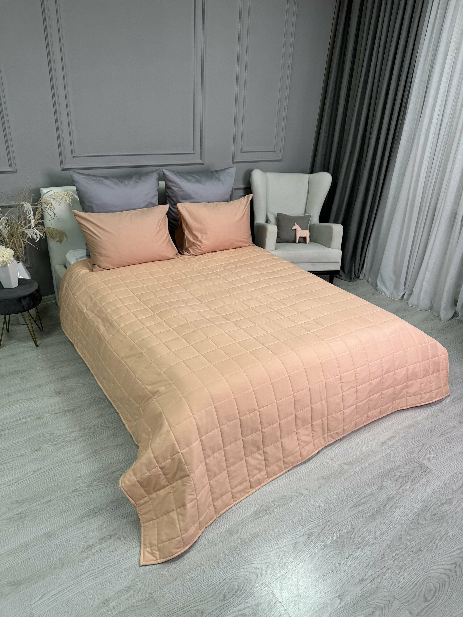 СохранитьПокрывало на кровать 210х225 см, Ушки Подушки, персиковое, двухстороннее, стеганое интересное: