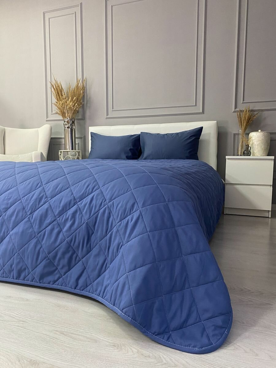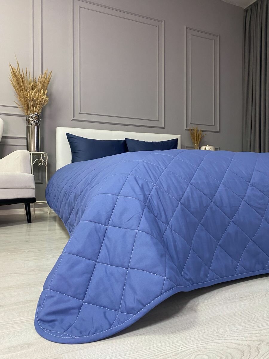 СохранитьПокрывало на кровать и диван 210х240 см стеганое, синее, Ушки Подушки интересное: