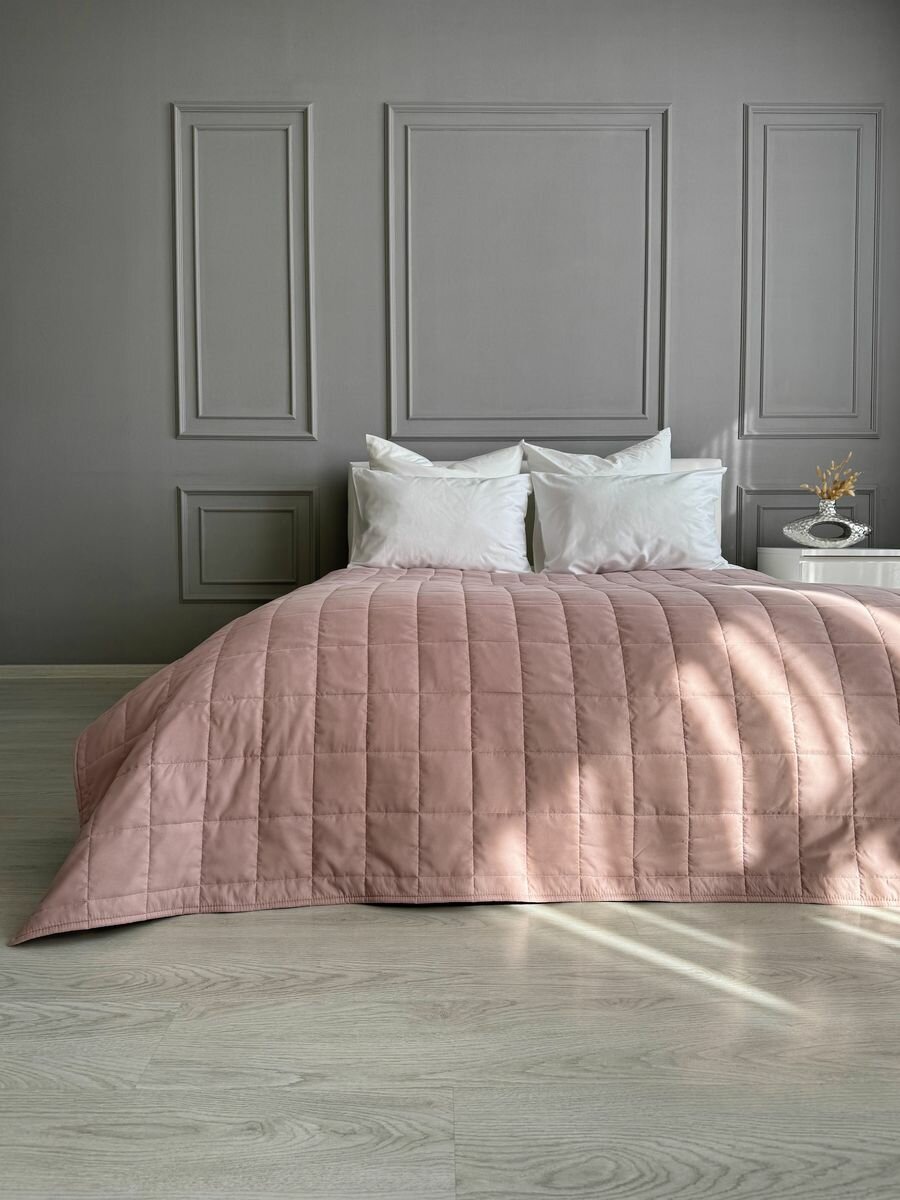 Купить Покрывало на кровать 210х225 см, Ушки Подушки, розовое, двухстороннее, стеганое