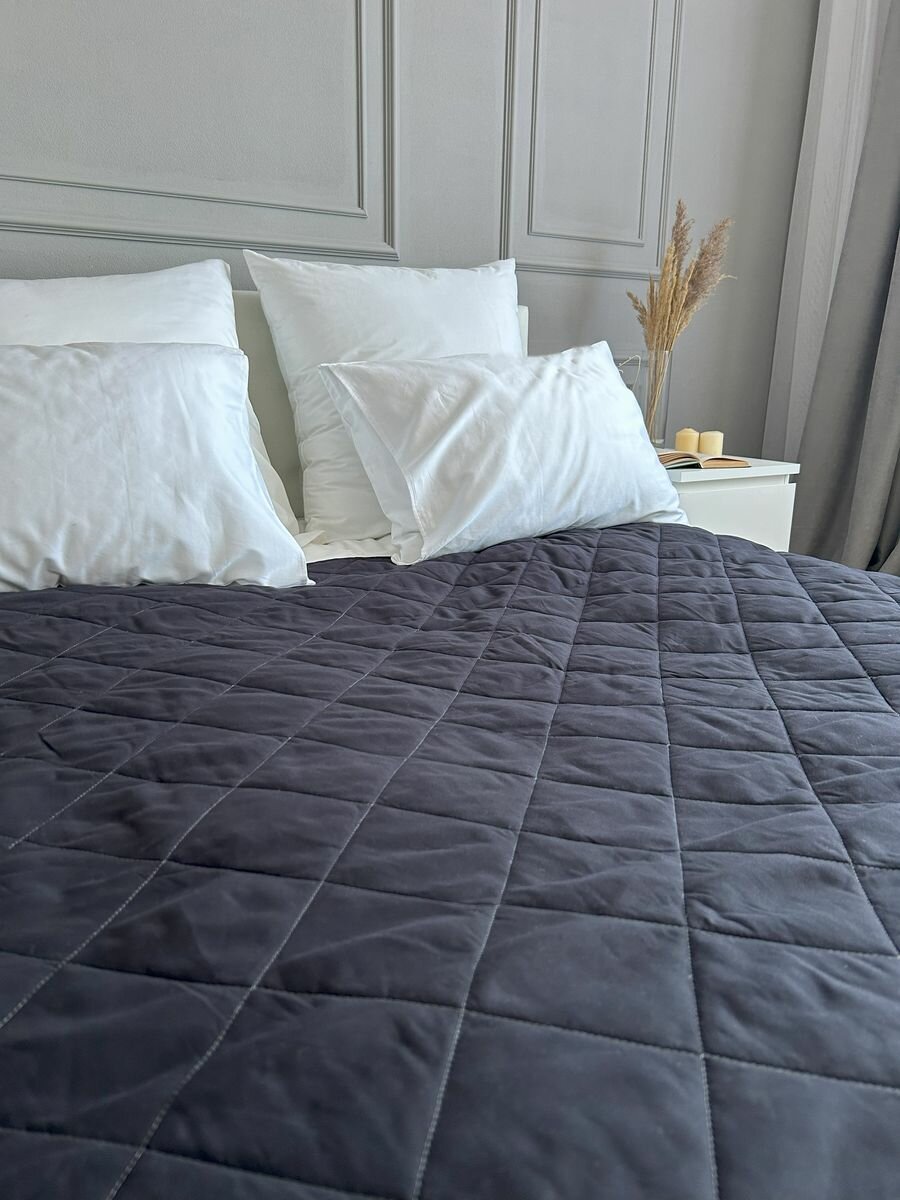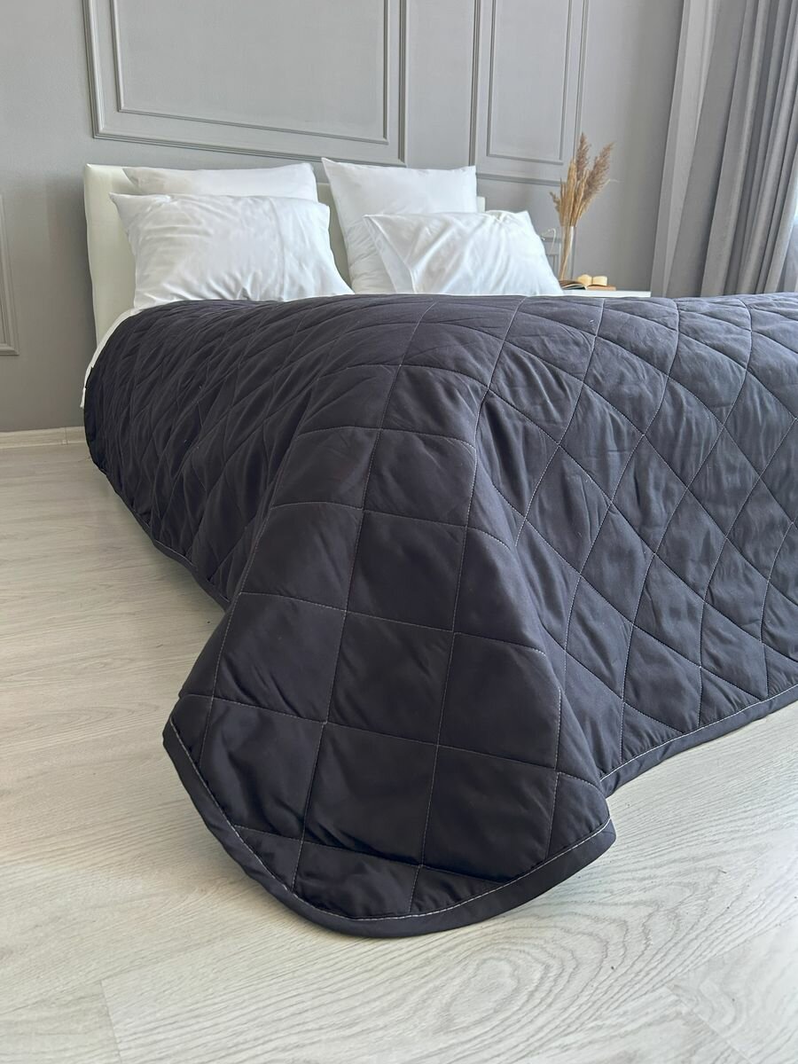 Купить Покрывало на кровать и диван 210х240 см стеганое, черное, Ушки Подушки
