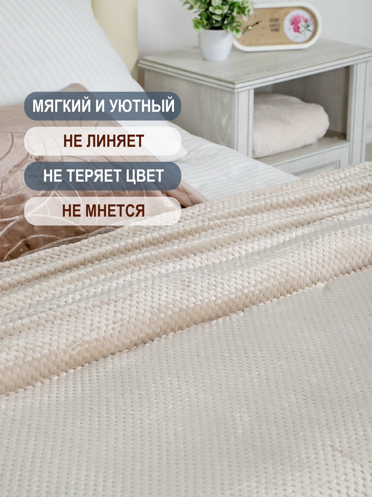 Плед 100х 50 см , теплый плед , накидка , Bio-Line, пушистый , плюшевый, бежевый интересное: