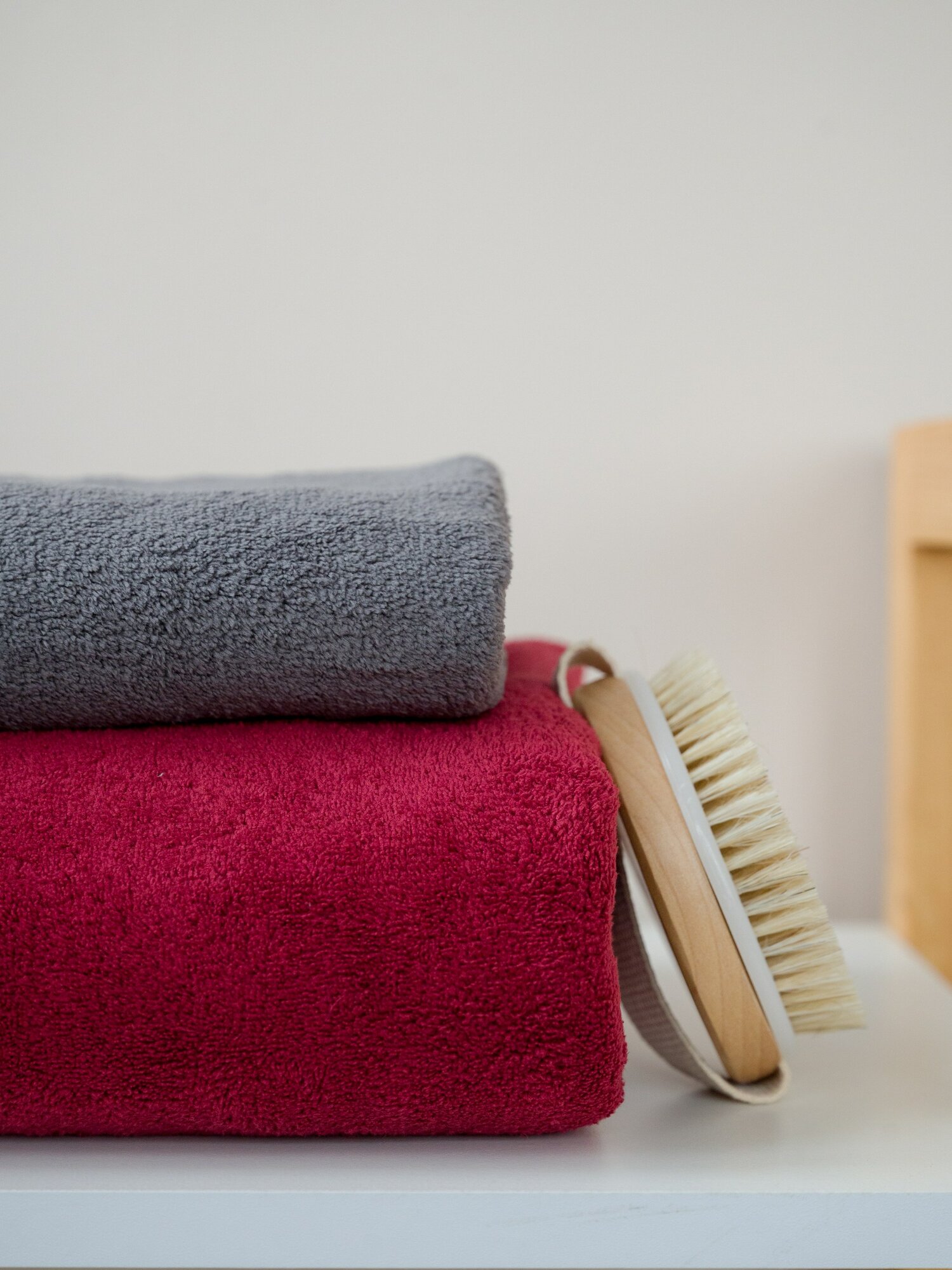 Купить Полотенце банное набор 2 шт Павлина 70х140 и 35х75 см, из микрофибры, винный-графит