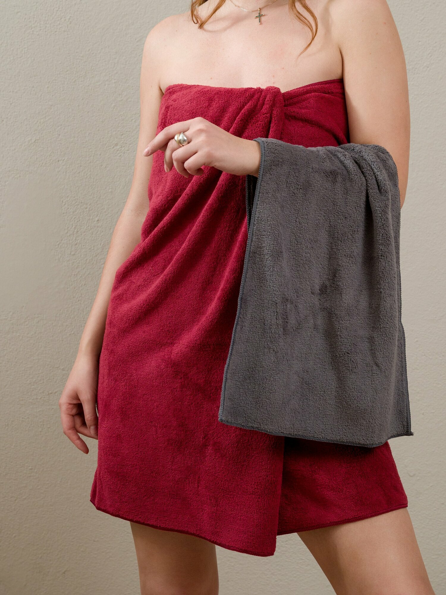 СохранитьПолотенце банное набор 2 шт Павлина 70х140 и 35х75 см, из микрофибры, винный-графит интересное:
