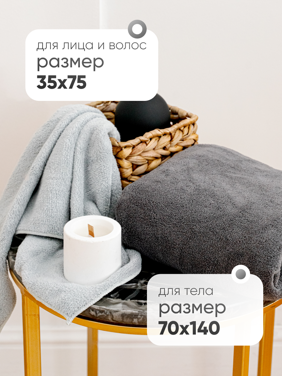 СохранитьПолотенце банное набор 2 шт Павлина 70х140 и 35х75 см, из микрофибры, графит-серый интересное: