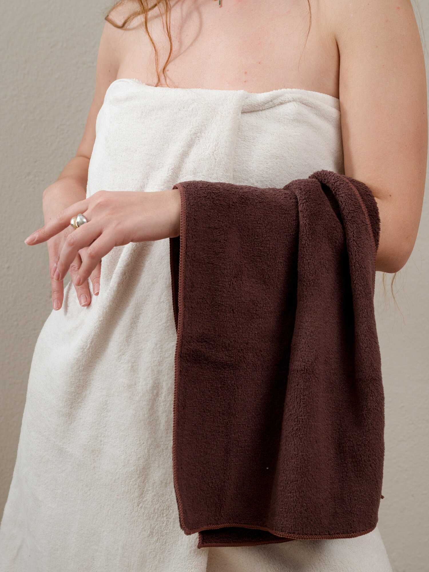 Купить Полотенце банное набор 2 шт Павлина 70х140 и 35х75 см, из микрофибры, молочный-коричневый