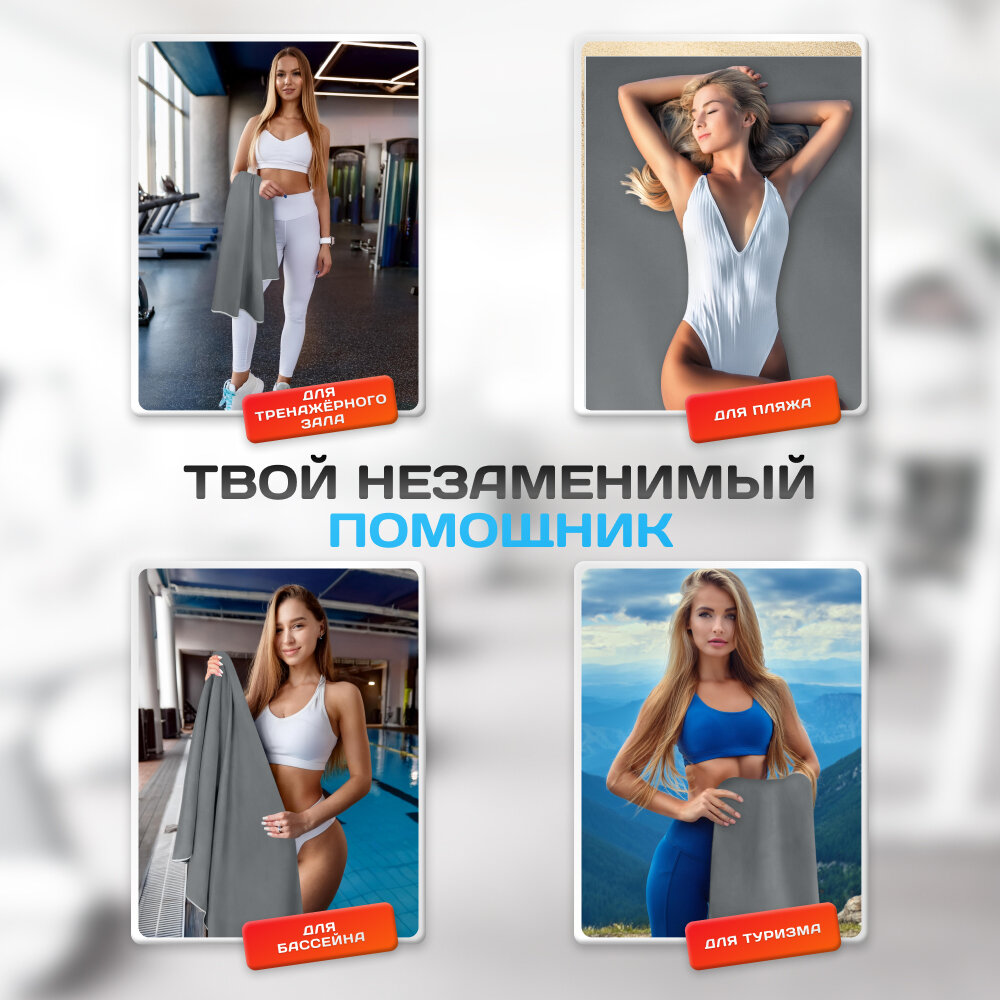 Купить Спортивное полотенце из микрофибры быстросохнущее для зала и для бассейна 70х140 см, тёмно-серое