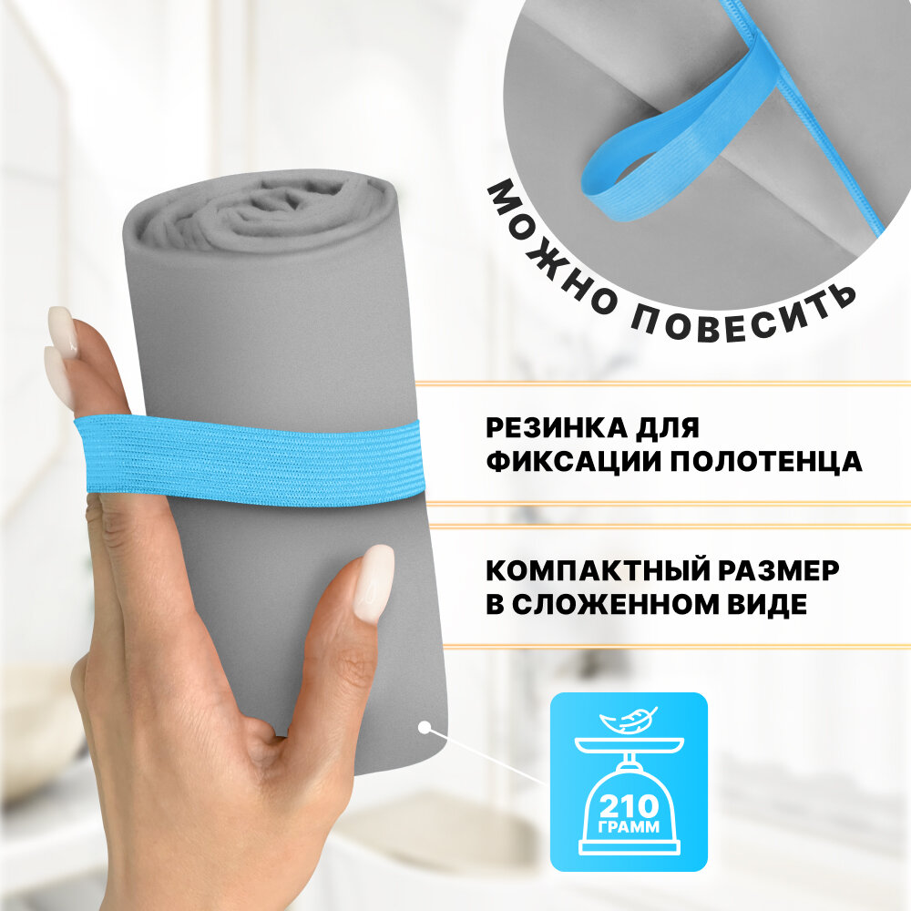 Спортивное полотенце из микрофибры быстросохнущее для зала и для бассейна 70х140 см, светло-серое
