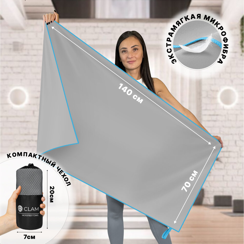 СохранитьСпортивное полотенце из микрофибры быстросохнущее для зала и для бассейна 70х140 см, серое интересное: