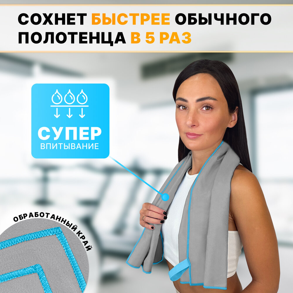 Купить Спортивное полотенце из микрофибры быстросохнущее для зала и для бассейна 70х140 см, серое