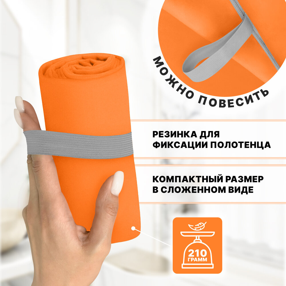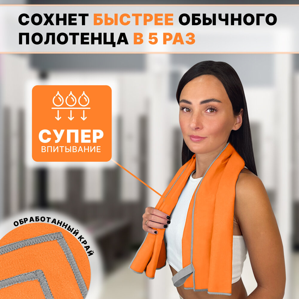 Купить Спортивное полотенце из микрофибры быстросохнущее для зала и для бассейна 70х140 см, оранжевое