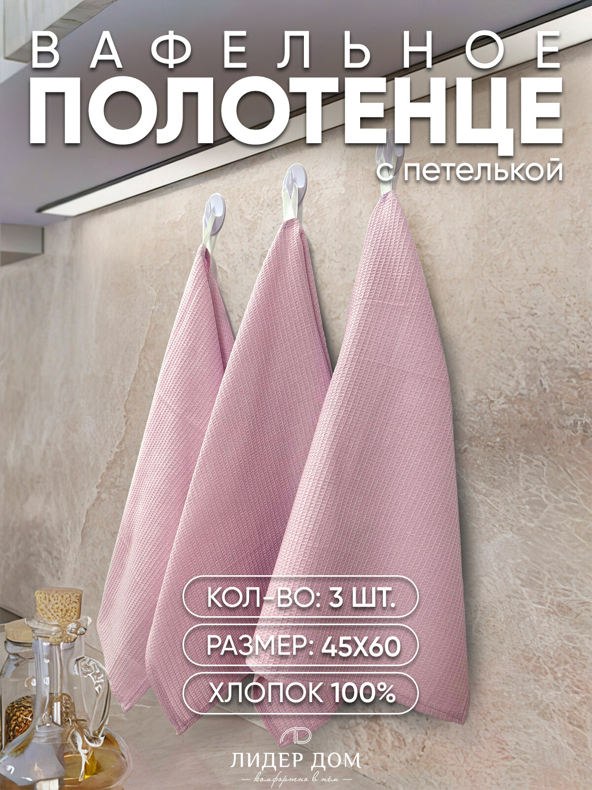 Набор кухонных полотенец "Лидер Дом", вафельная ткань, 45x60 см, розовый, 3шт. интересное: