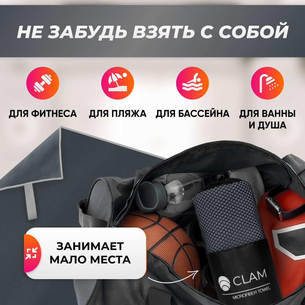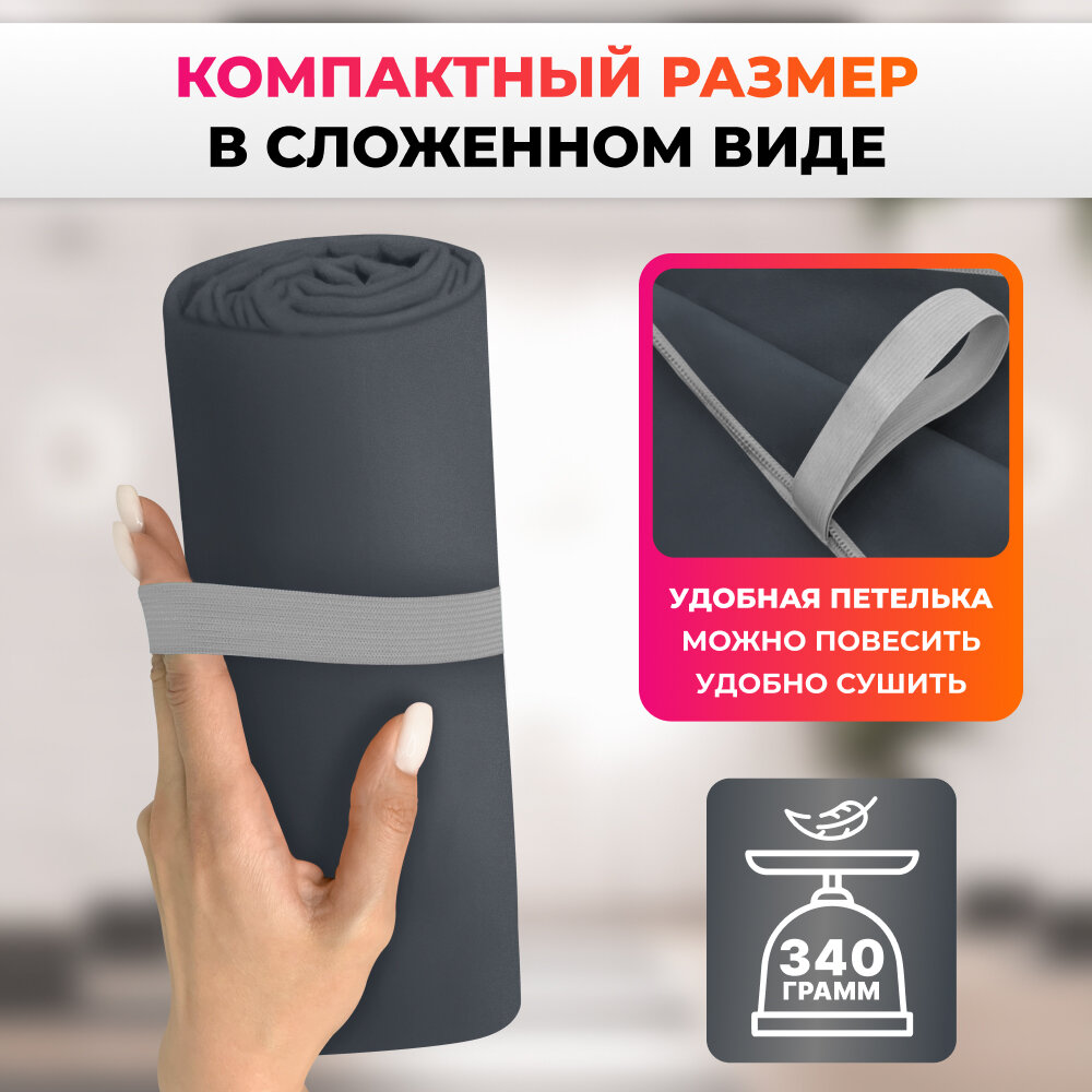 СохранитьСпортивное полотенце из микрофибры быстросохнущее для зала и для бассейна 90х180 см, серое интересное: