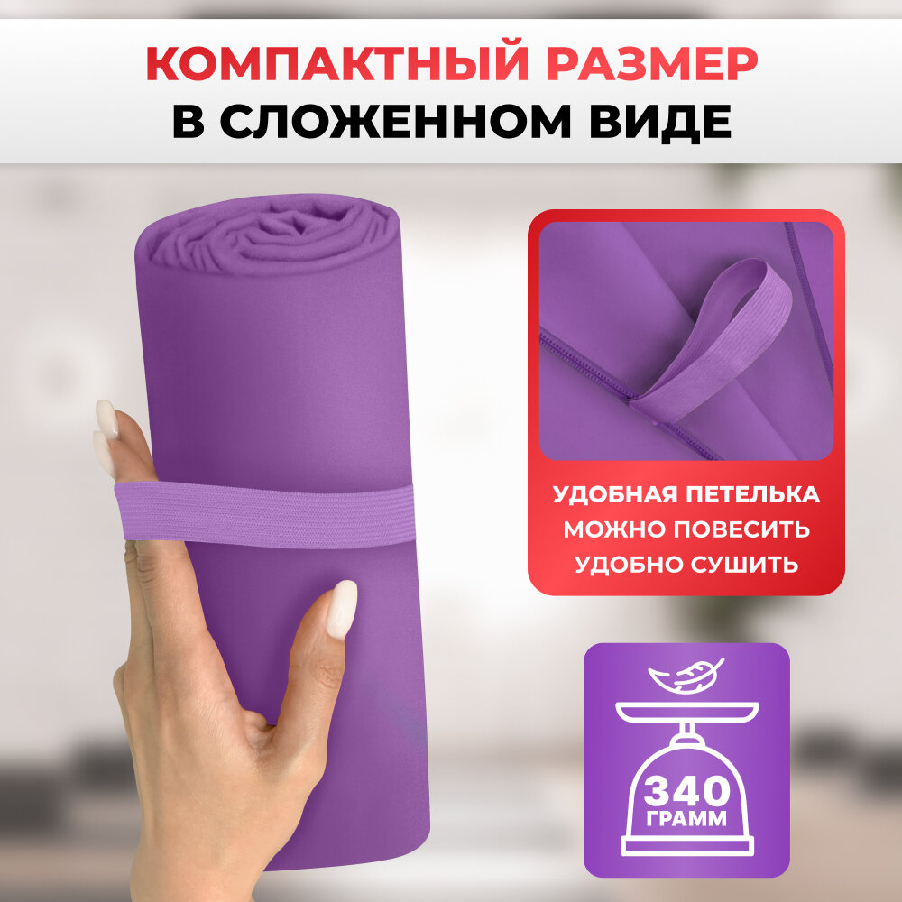 Купить Спортивное полотенце из микрофибры быстросохнущее для зала и для бассейна 90х180 см, фиолетовое