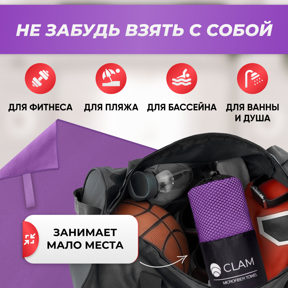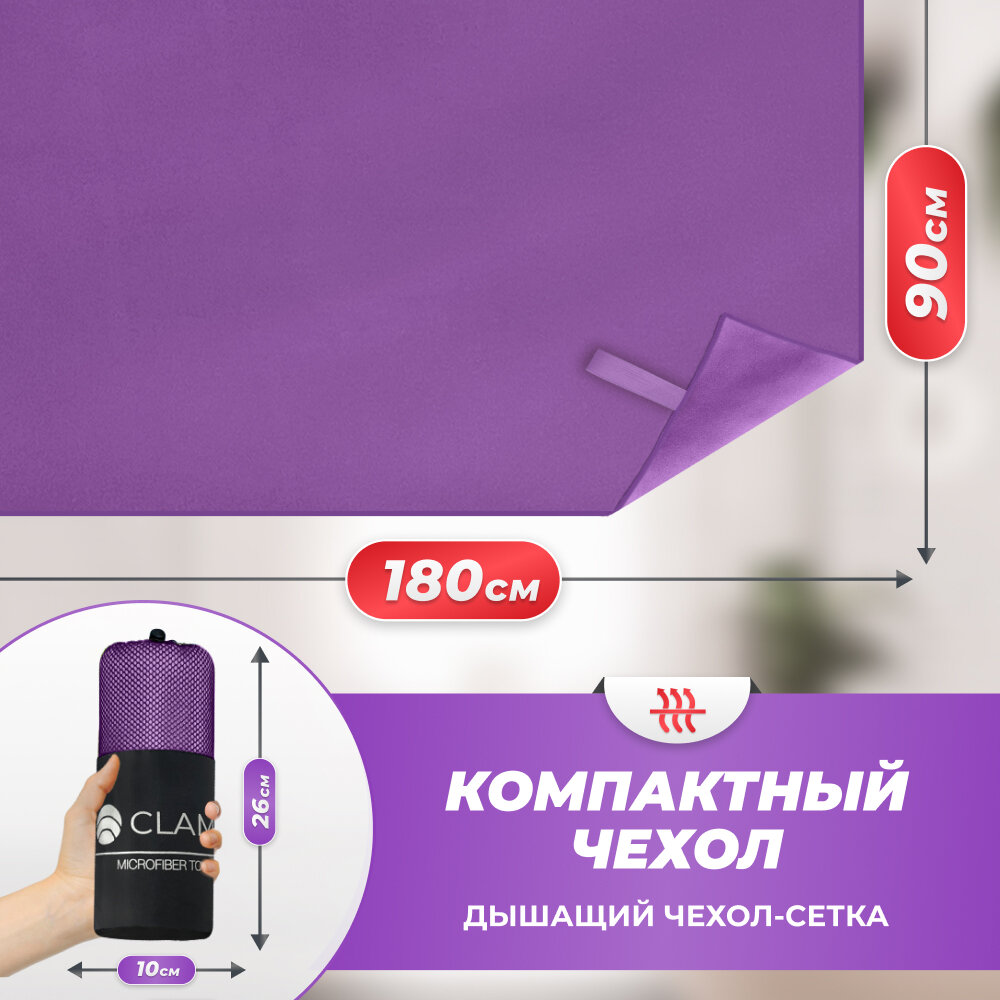 СохранитьСпортивное полотенце из микрофибры быстросохнущее для зала и для бассейна 90х180 см, фиолетовое интересное: