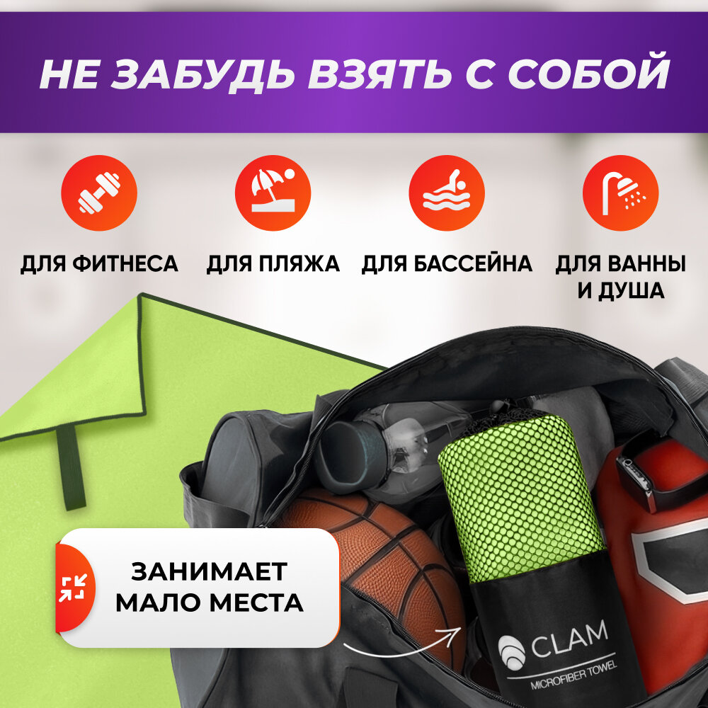 СохранитьСпортивное полотенце из микрофибры быстросохнущее для зала и для бассейна 90х180 см, салатовый интересное: