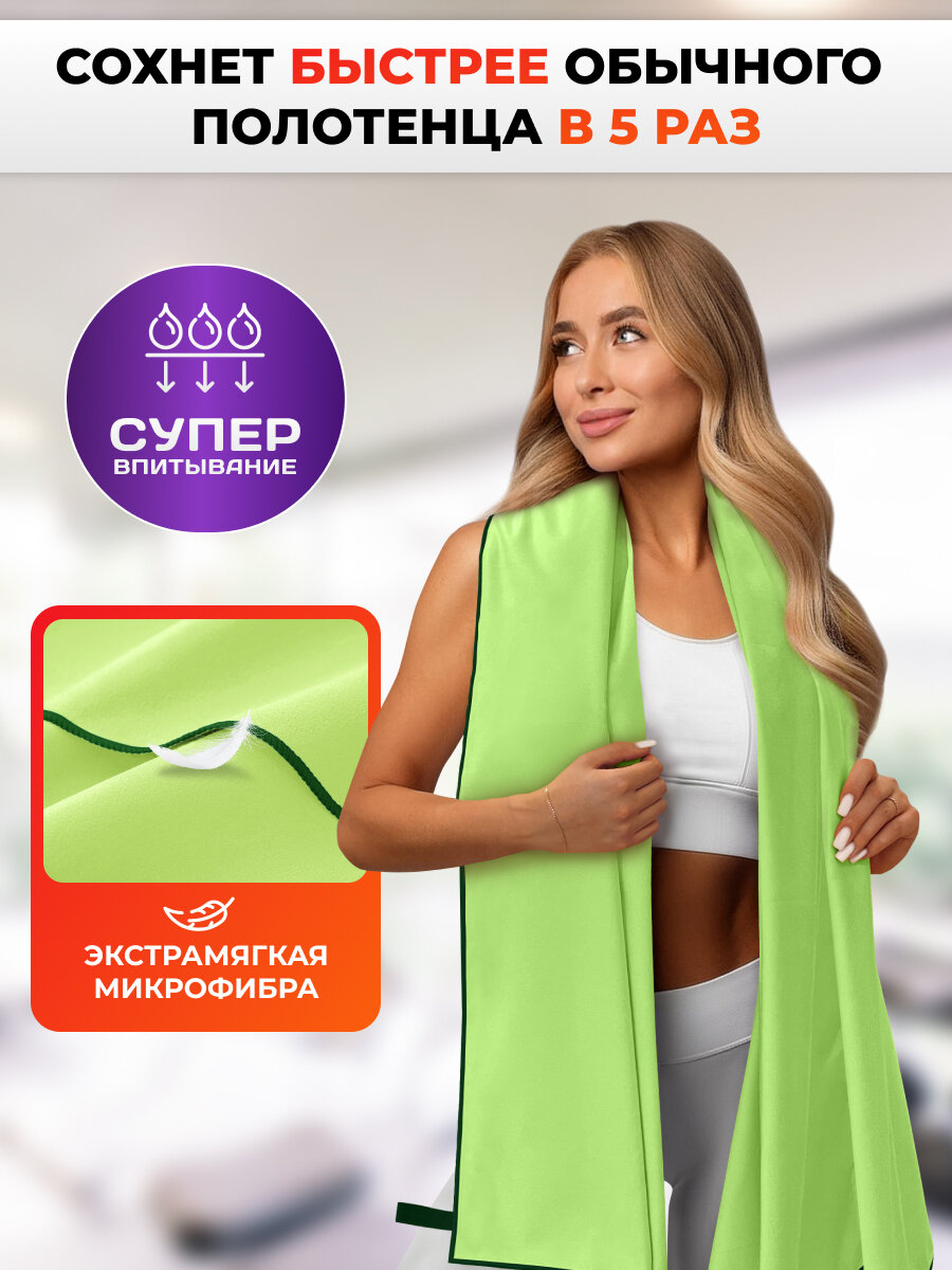 Купить Спортивное полотенце из микрофибры быстросохнущее для зала и для бассейна 90х180 см, салатовый