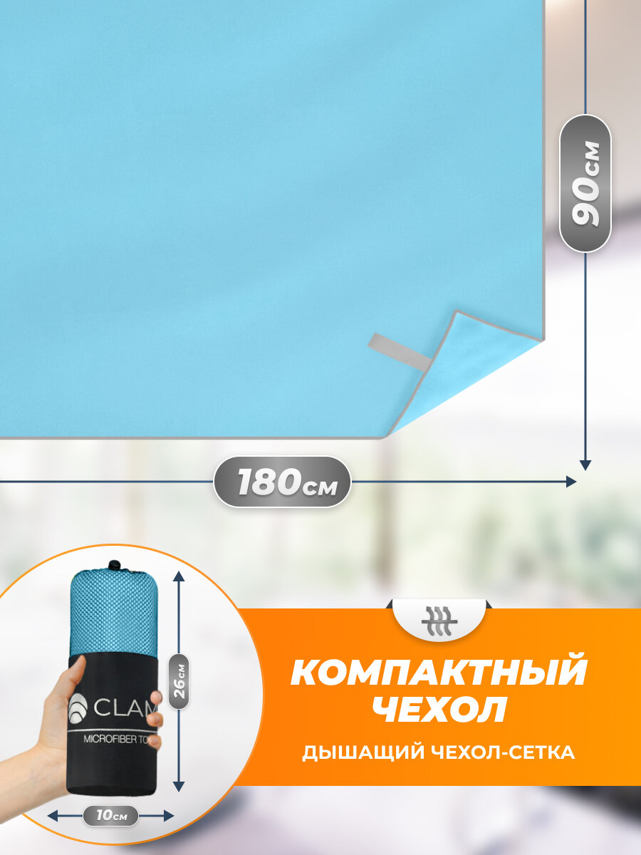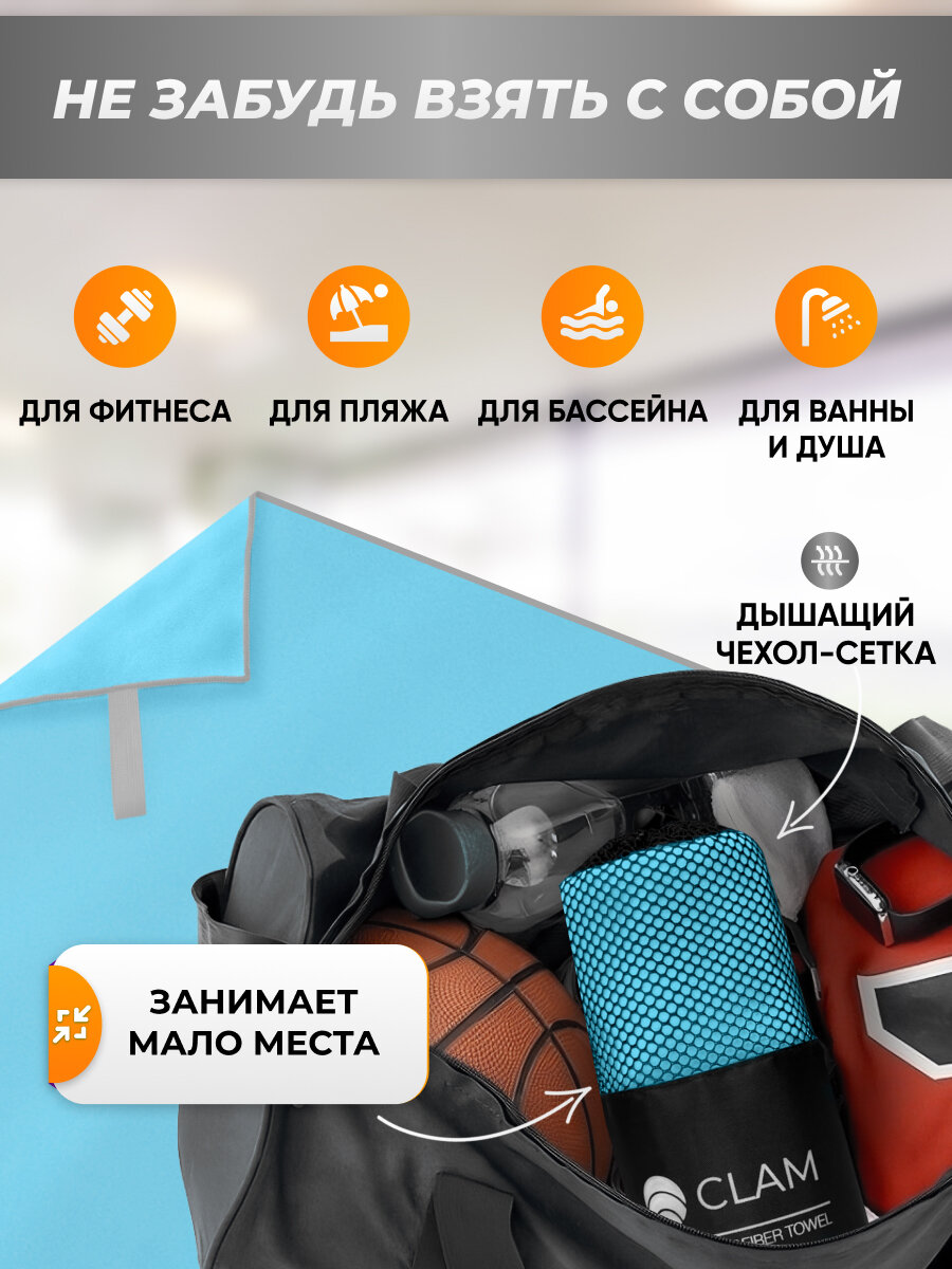 СохранитьСпортивное полотенце из микрофибры быстросохнущее для зала и для бассейна 90х180 см, голубое интересное: