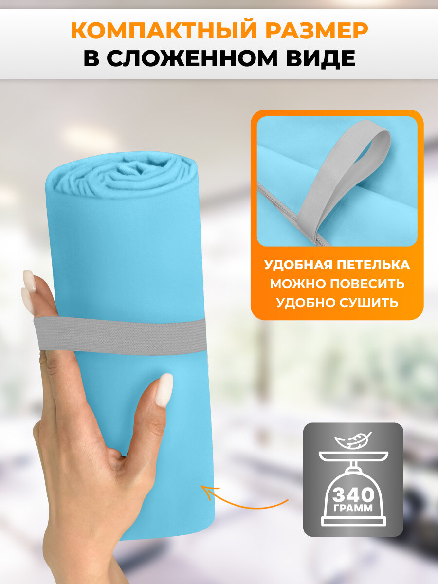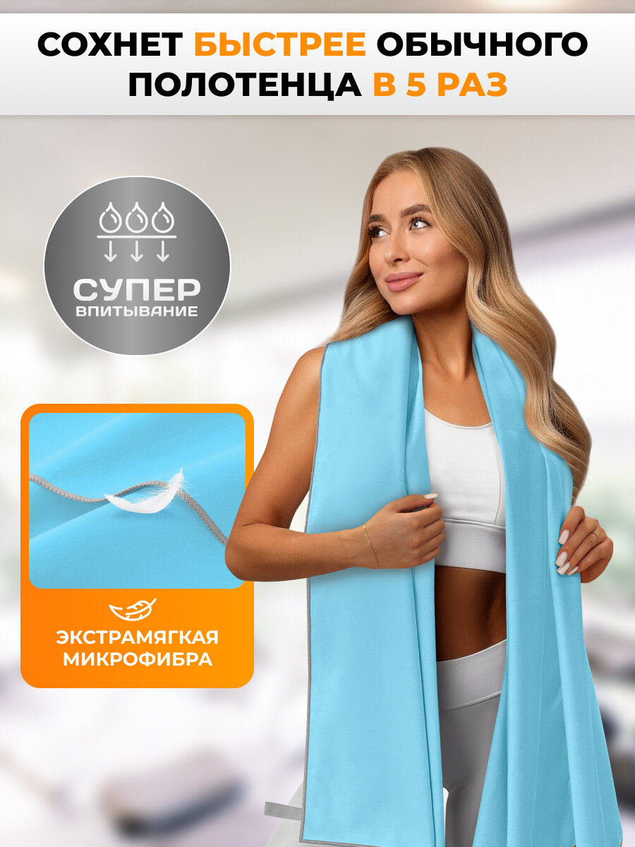 Купить Спортивное полотенце из микрофибры быстросохнущее для зала и для бассейна 90х180 см, голубое