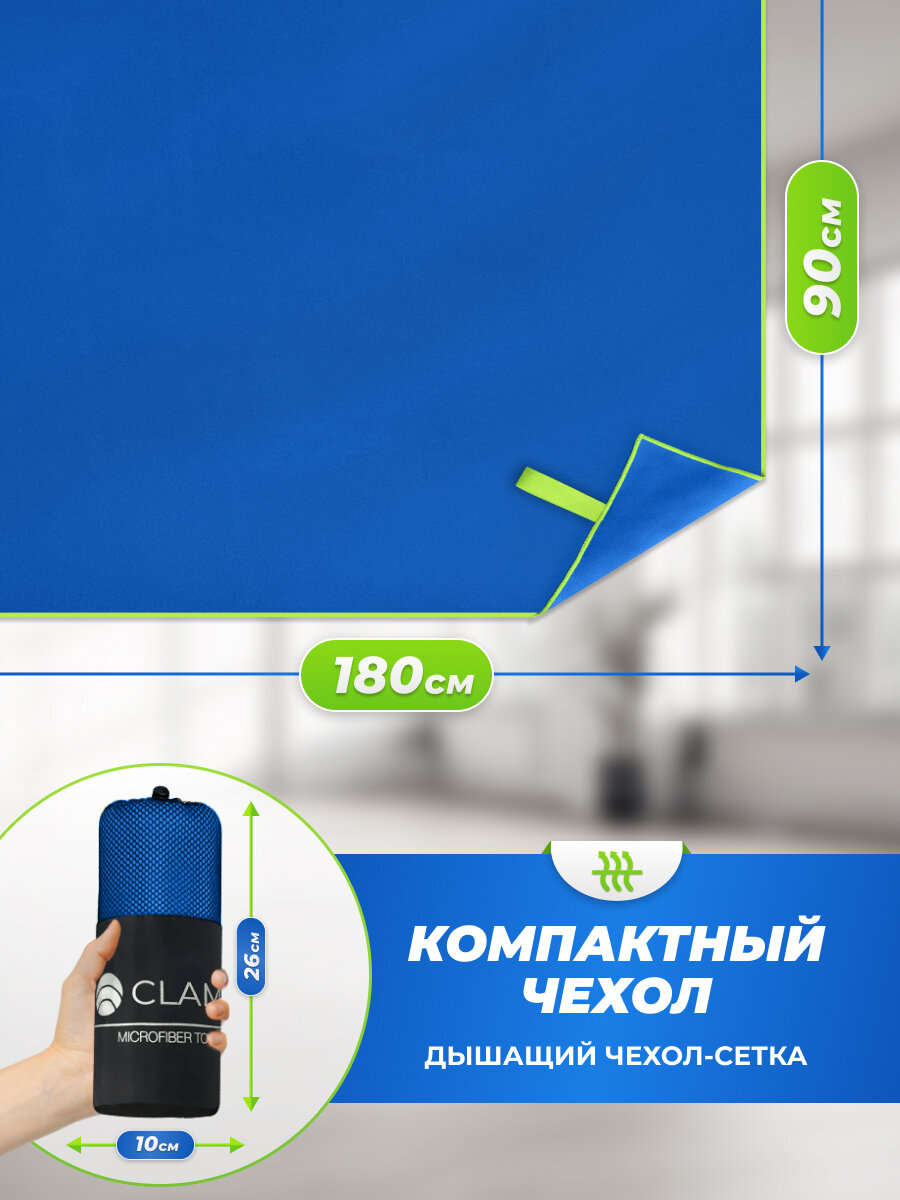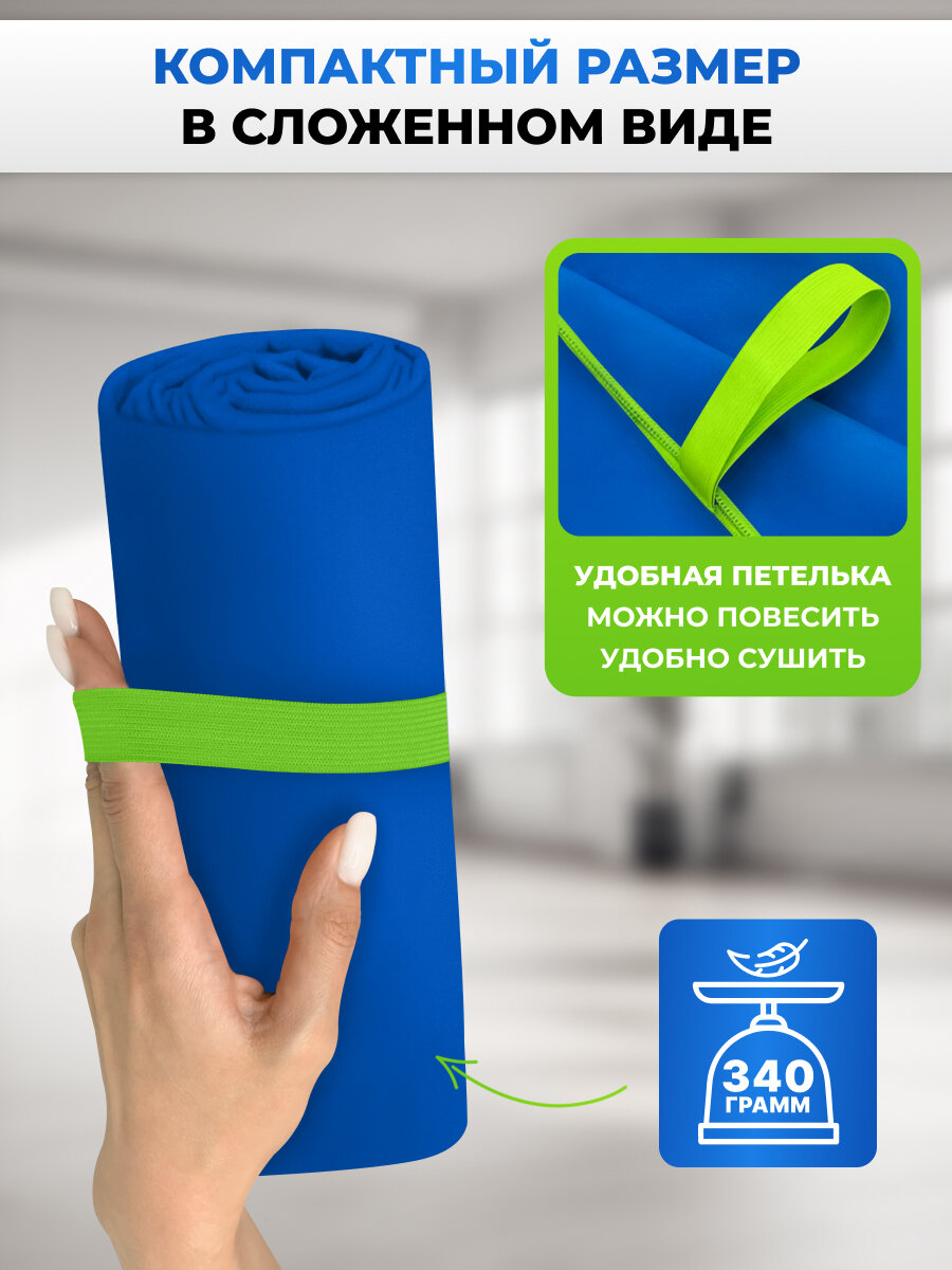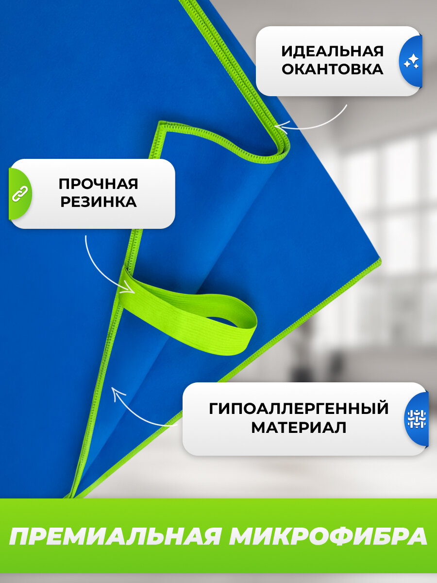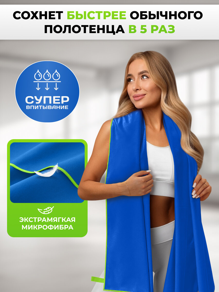 Купить Спортивное полотенце из микрофибры быстросохнущее для зала и для бассейна 90х180 см, синее