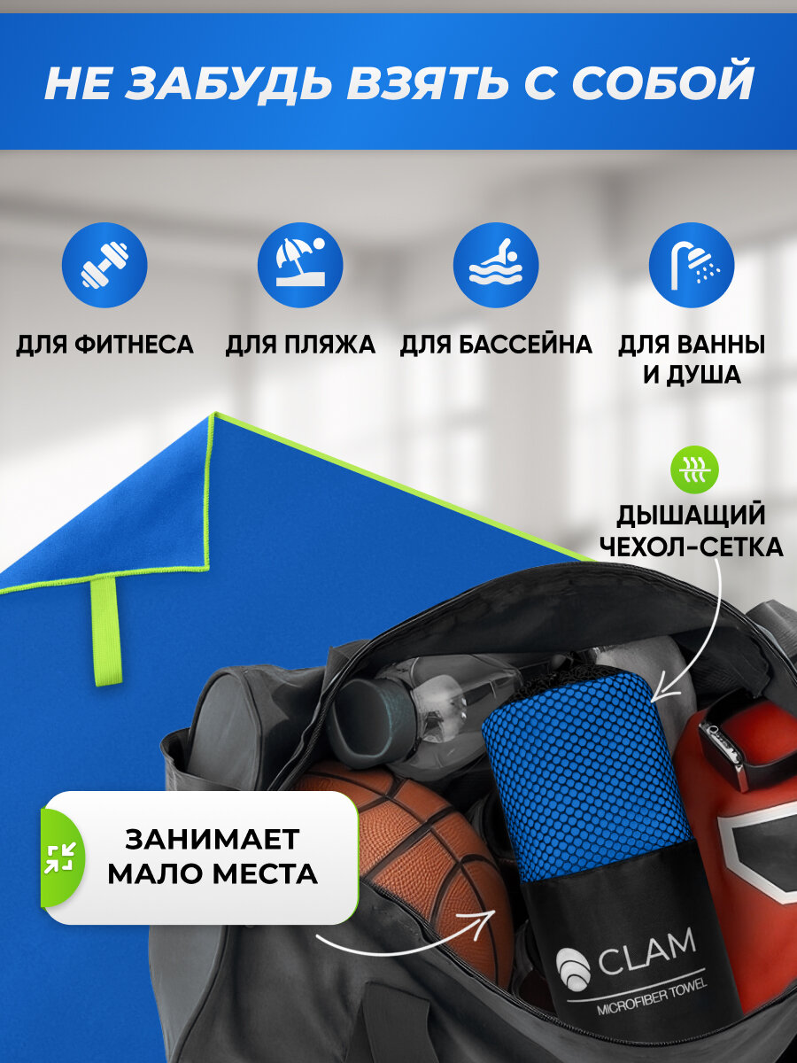 СохранитьСпортивное полотенце из микрофибры быстросохнущее для зала и для бассейна 90х180 см, синее интересное: