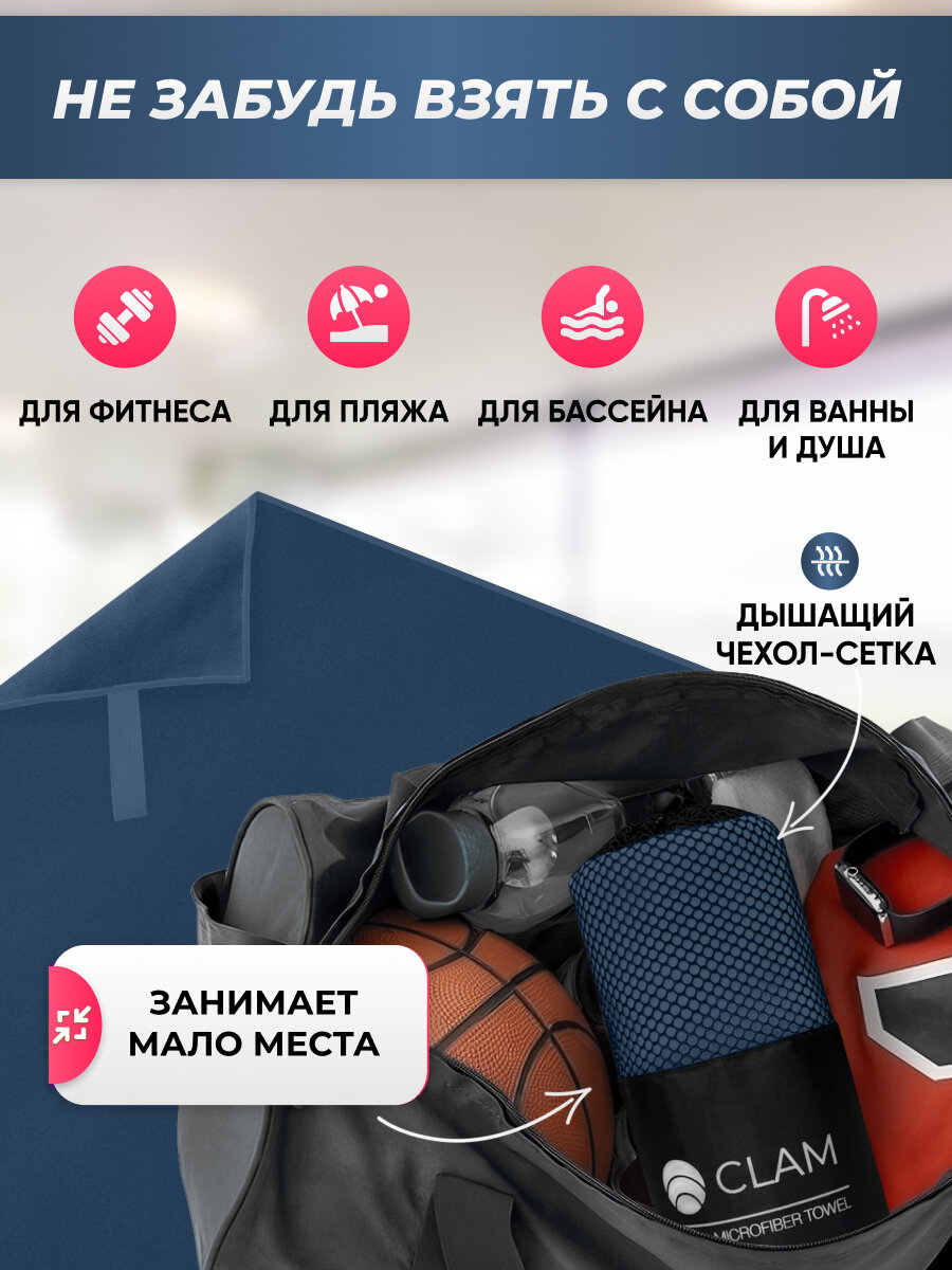 СохранитьСпортивное полотенце из микрофибры быстросохнущее для зала и для бассейна 90х180 см, тёмно-синее интересное: