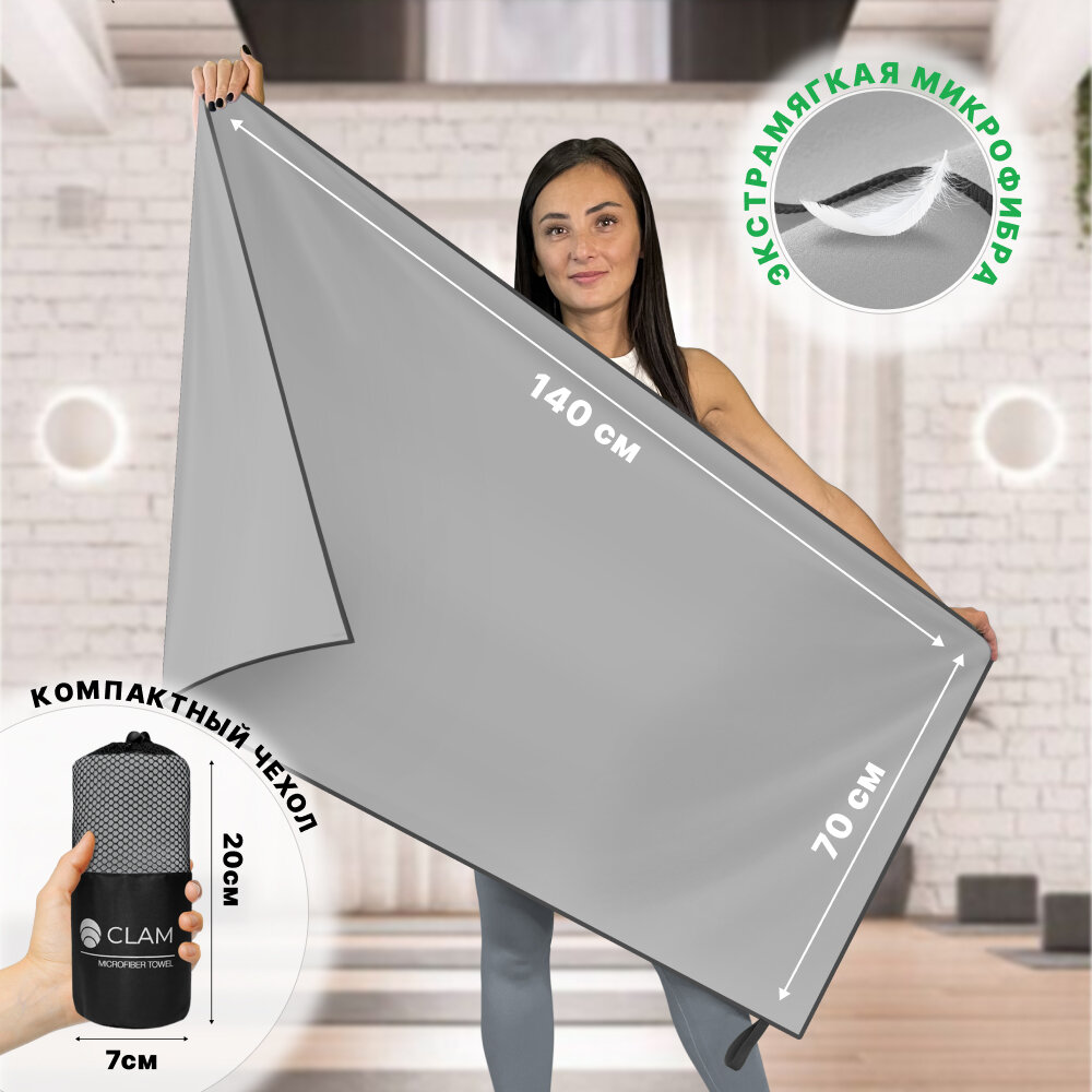 СохранитьСпортивное полотенце из микрофибры быстросохнущее для зала и для бассейна 70х140 см, светло-серое интересное:
