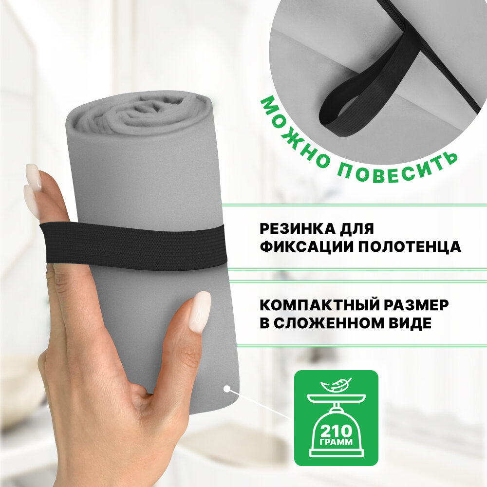 Купить Спортивное полотенце из микрофибры быстросохнущее для зала и для бассейна 70х140 см, светло-серое