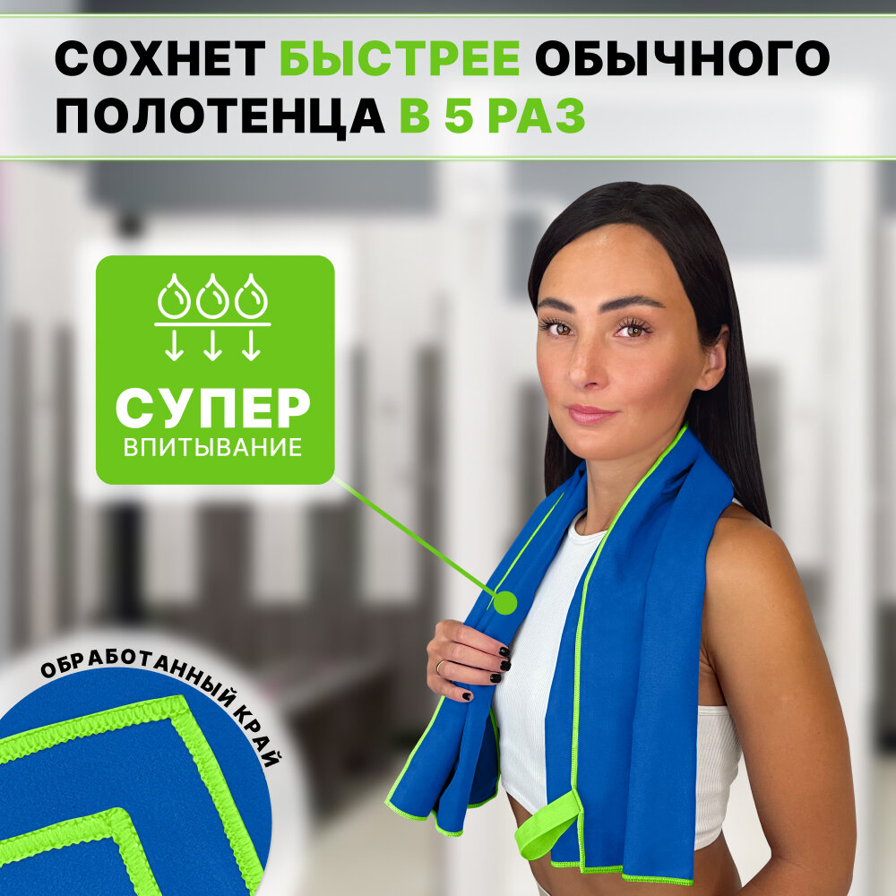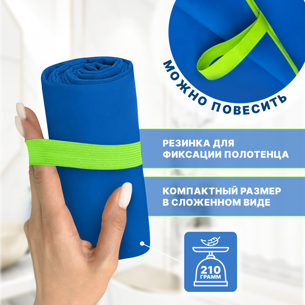 Купить Спортивное полотенце из микрофибры быстросохнущее для зала и для бассейна 70х140 см, синее
