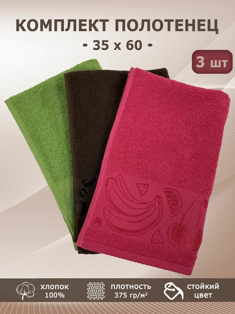 Кухонные полотенца - 3 шт. Набор махровых полотенец для кухни, для рук. 35x60 Хлопок 100% Разноцветные (Н-968.350-3) интересное: