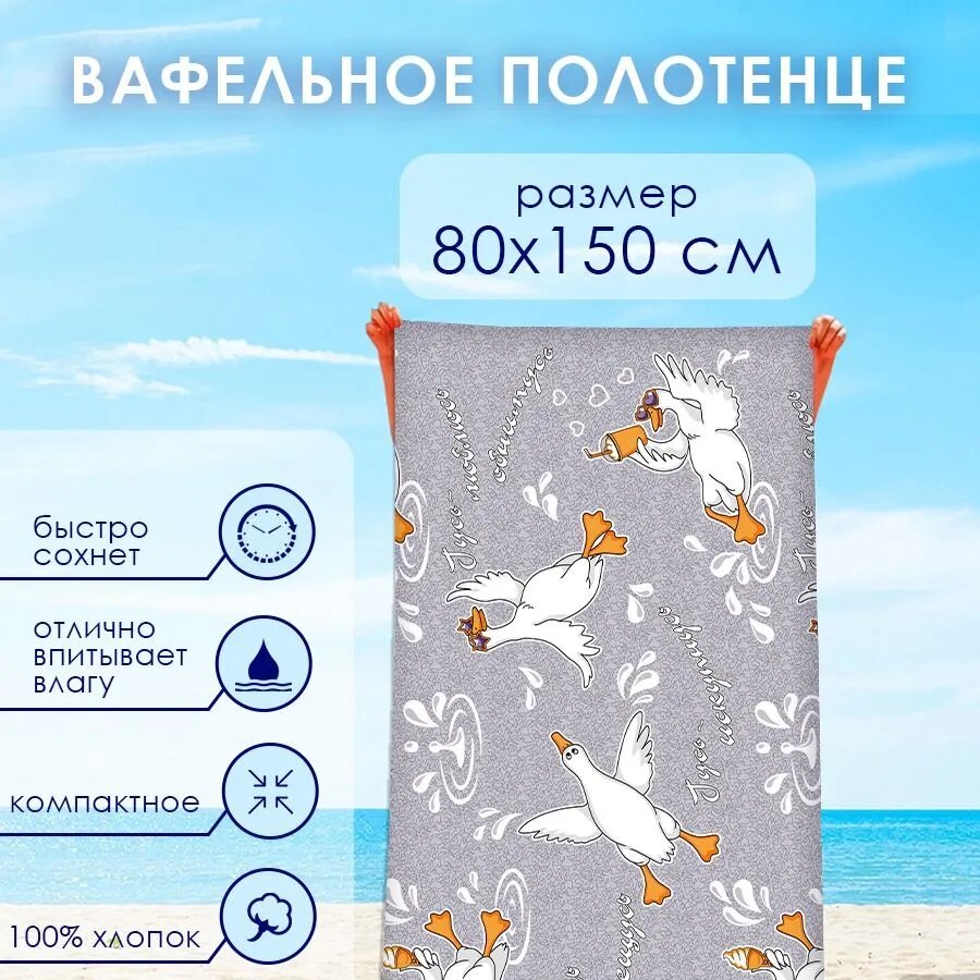 Полотенце банное / пляжное вафельное 80x150 см, 100 % хлопок Миланика Гусь-искупнусь интересное: