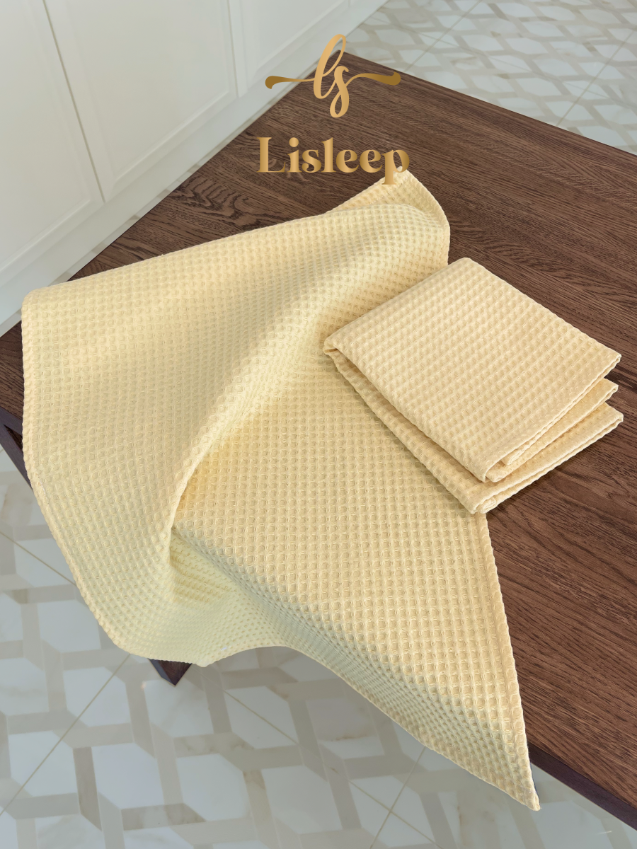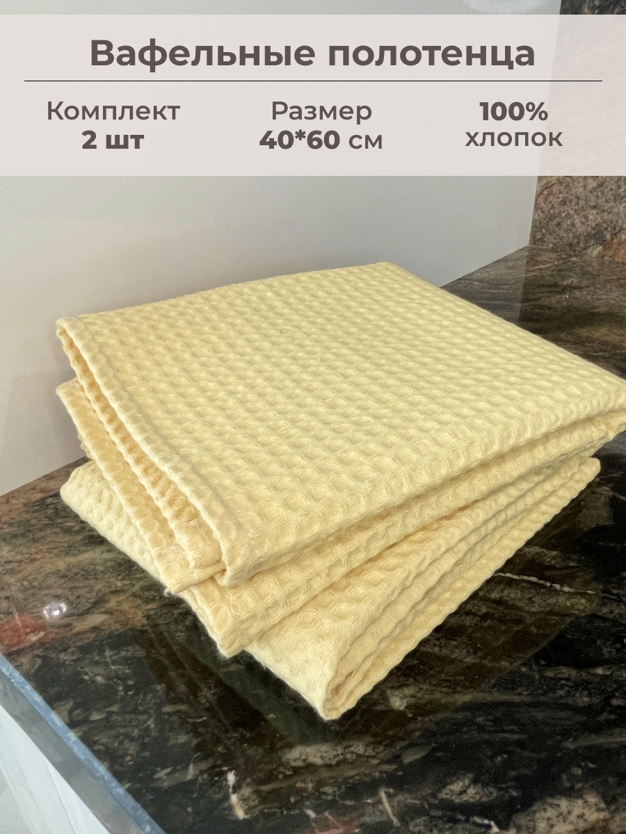 Набор кухонных вафельных полотенец "Lisleep", 40х60см, 2 шт, желтый/шампань