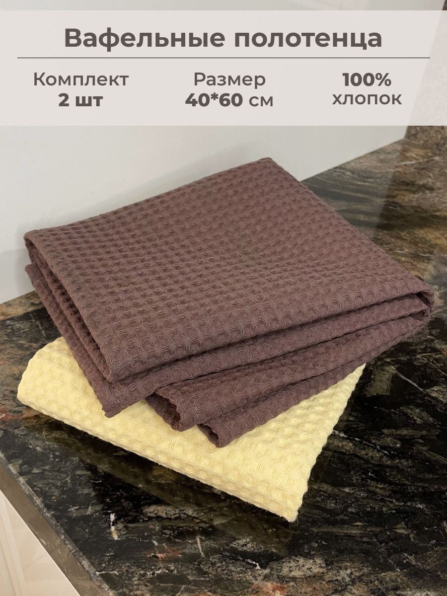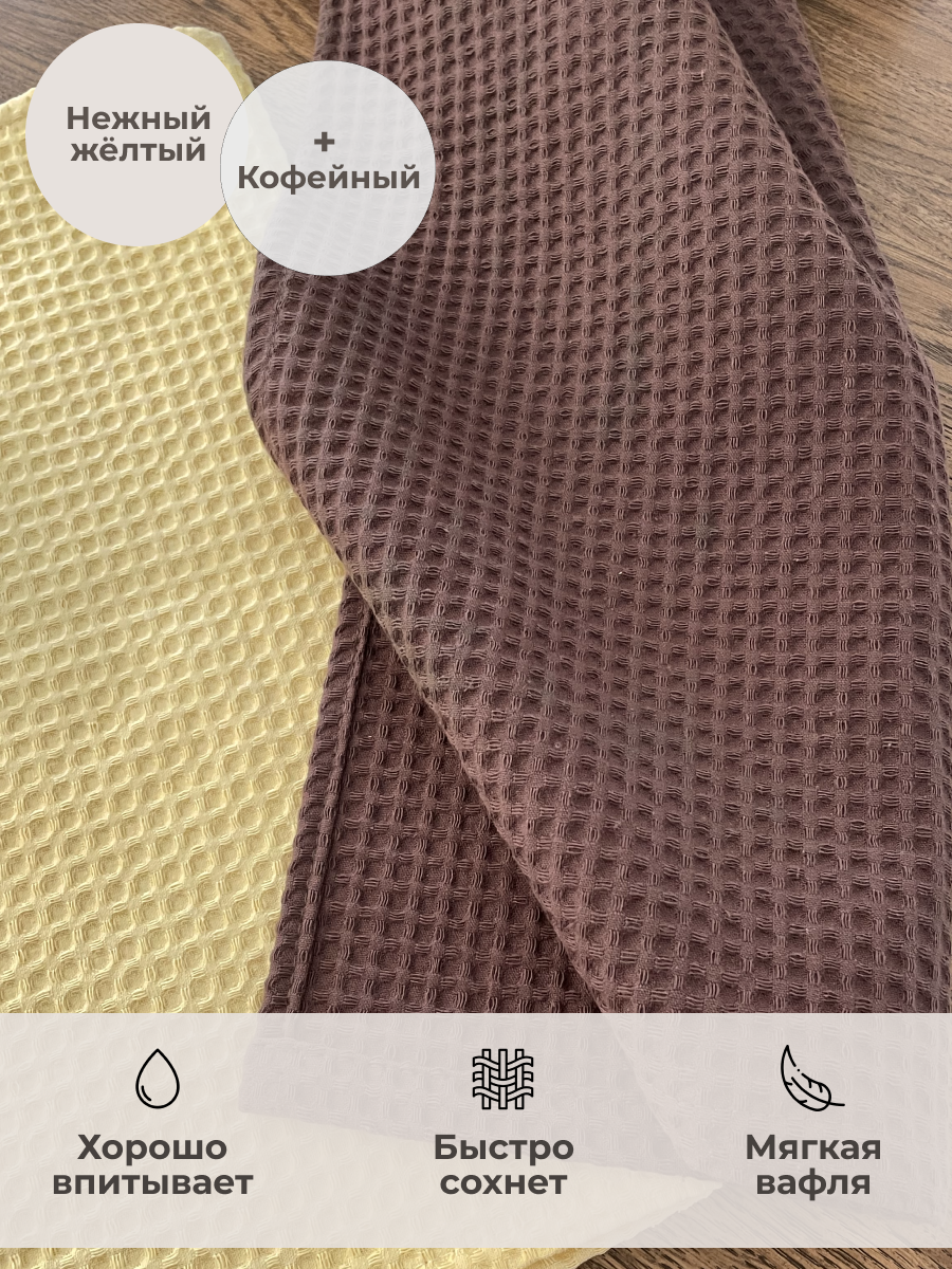Набор кухонных вафельных полотенец "Lisleep", 40х60см, 2 шт, желтый/кофейный интересное: