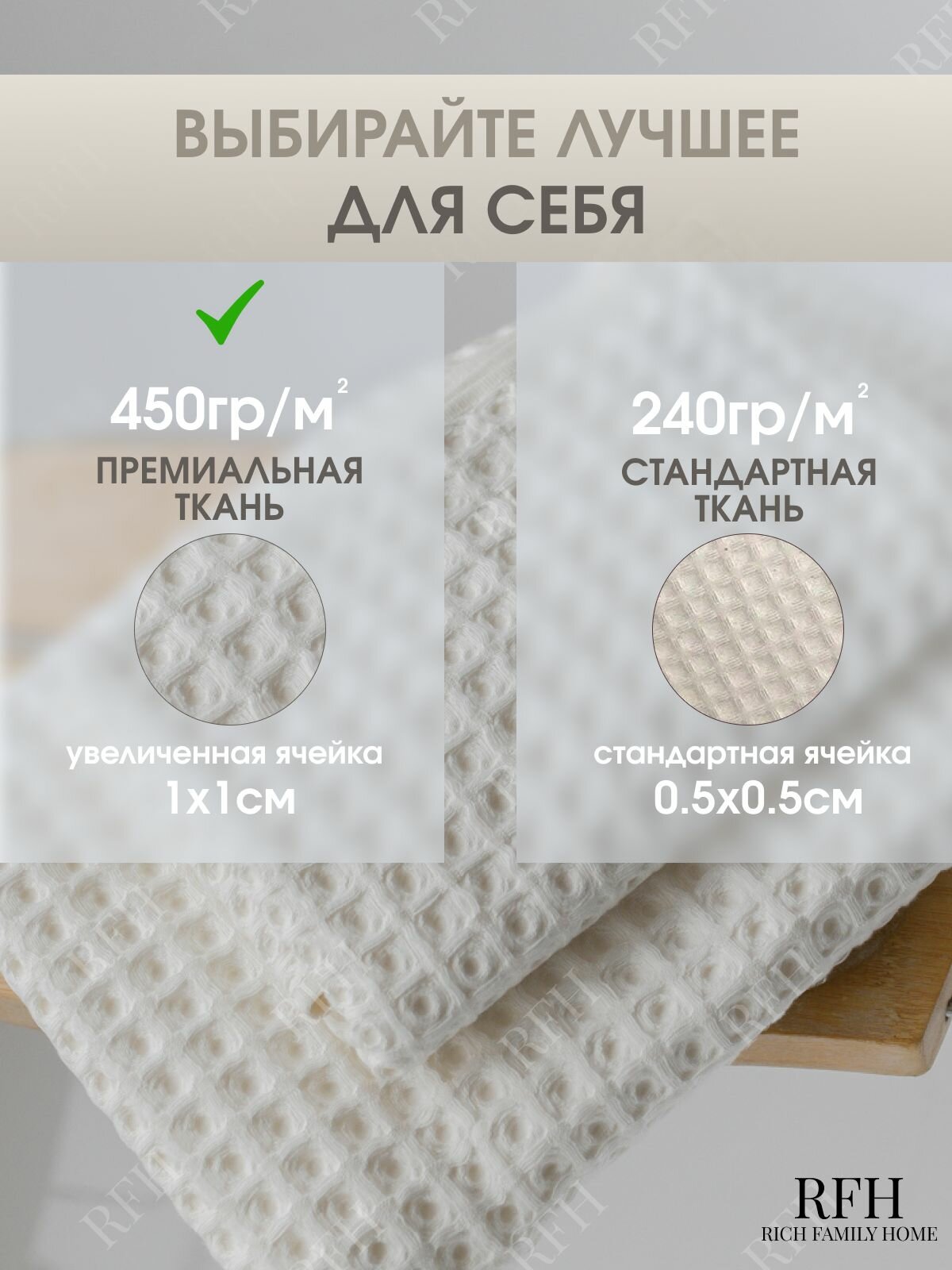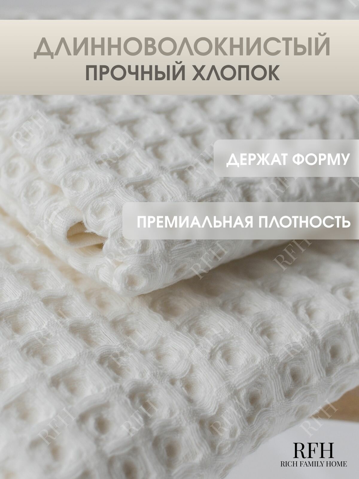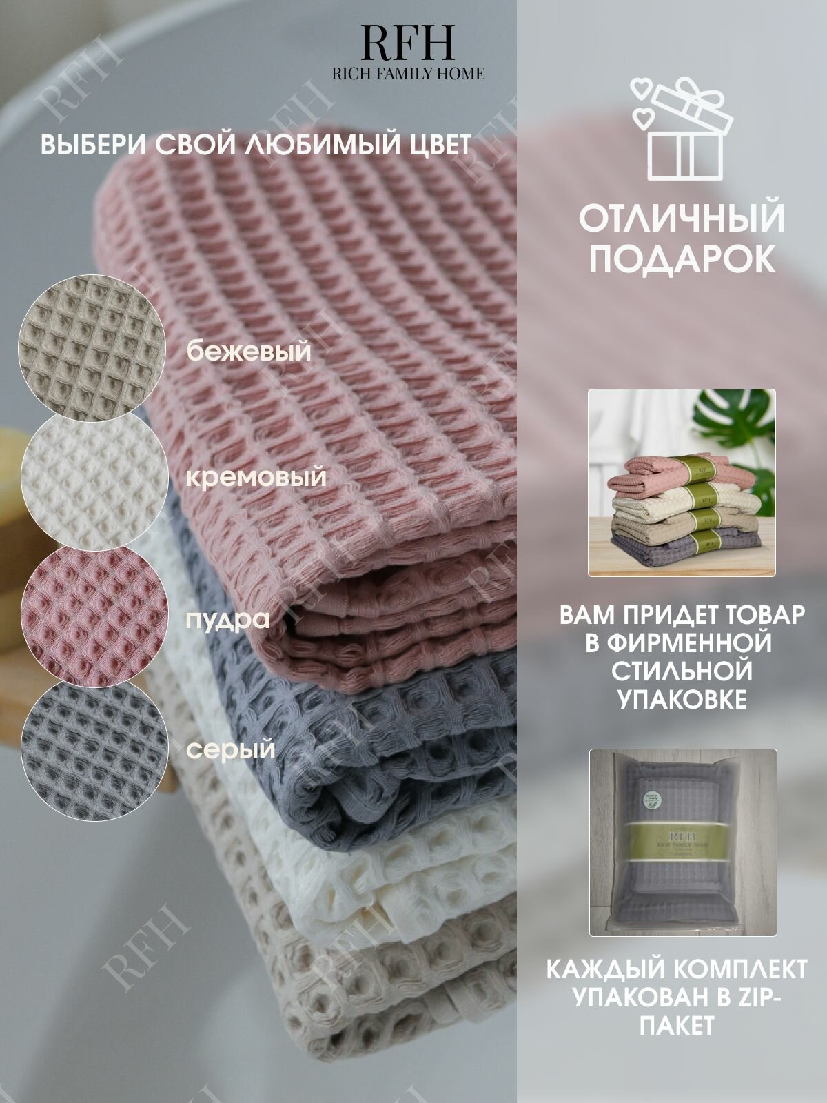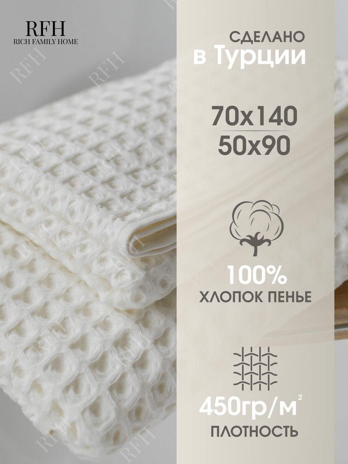 Набор банных полотенец RICH FAMILY HOME, хлопок 100%, вафельные, бежевые, 2шт 70х140 и 50х90