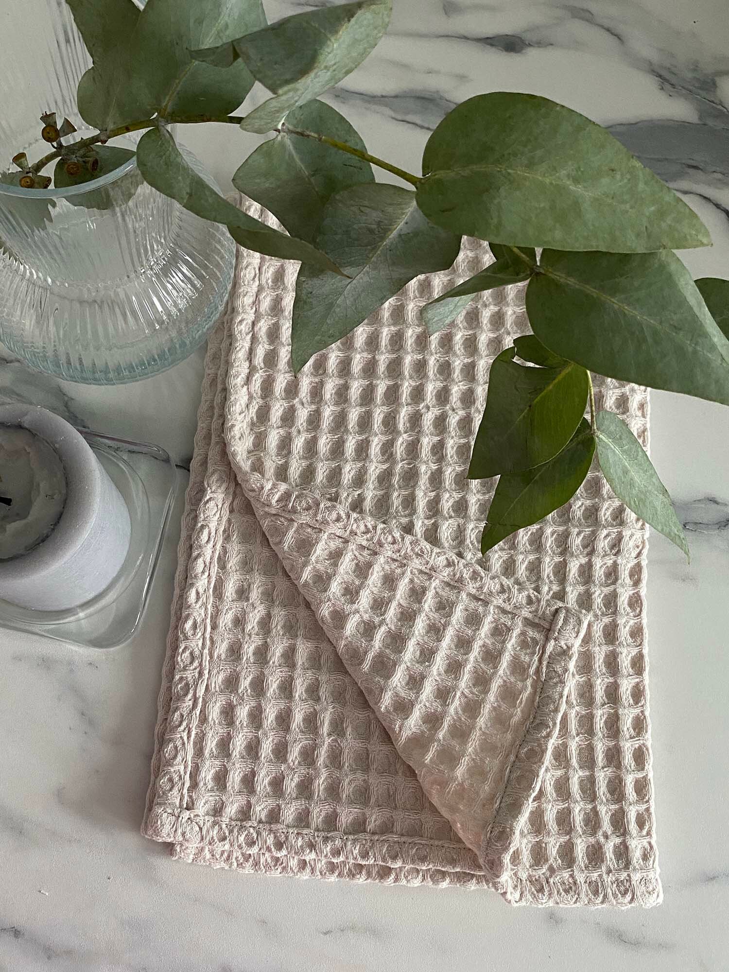 Купить Полотенце без рисунка, кухонное, вафельное, светло-бежевое 40*60