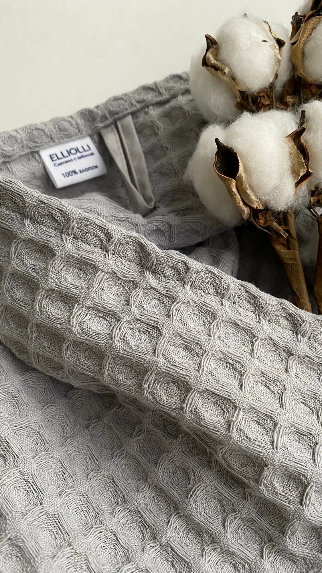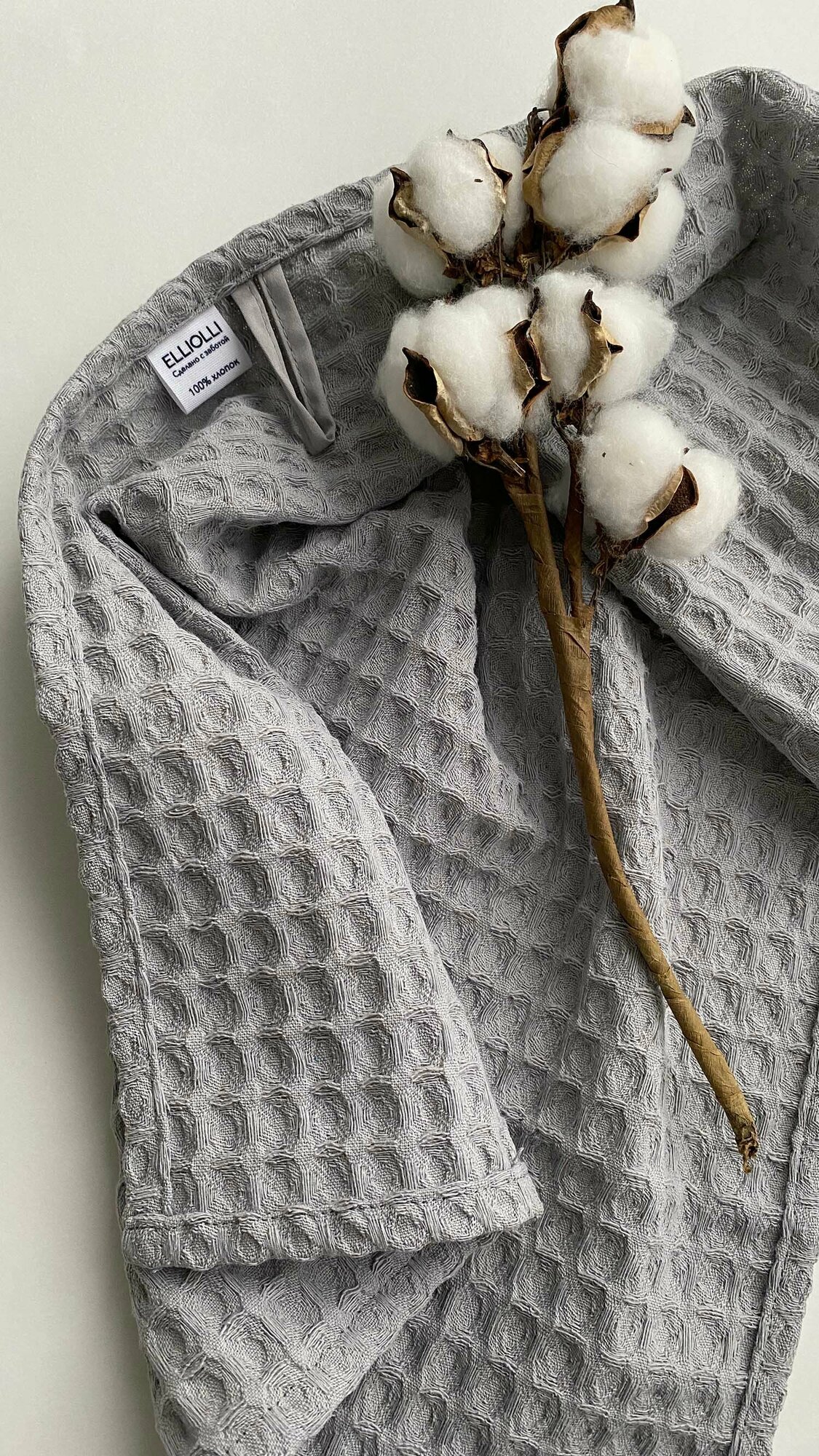 Полотенце кухонное вафельное крупное ELLIOLLI, 40 х 60см, серое интересное: