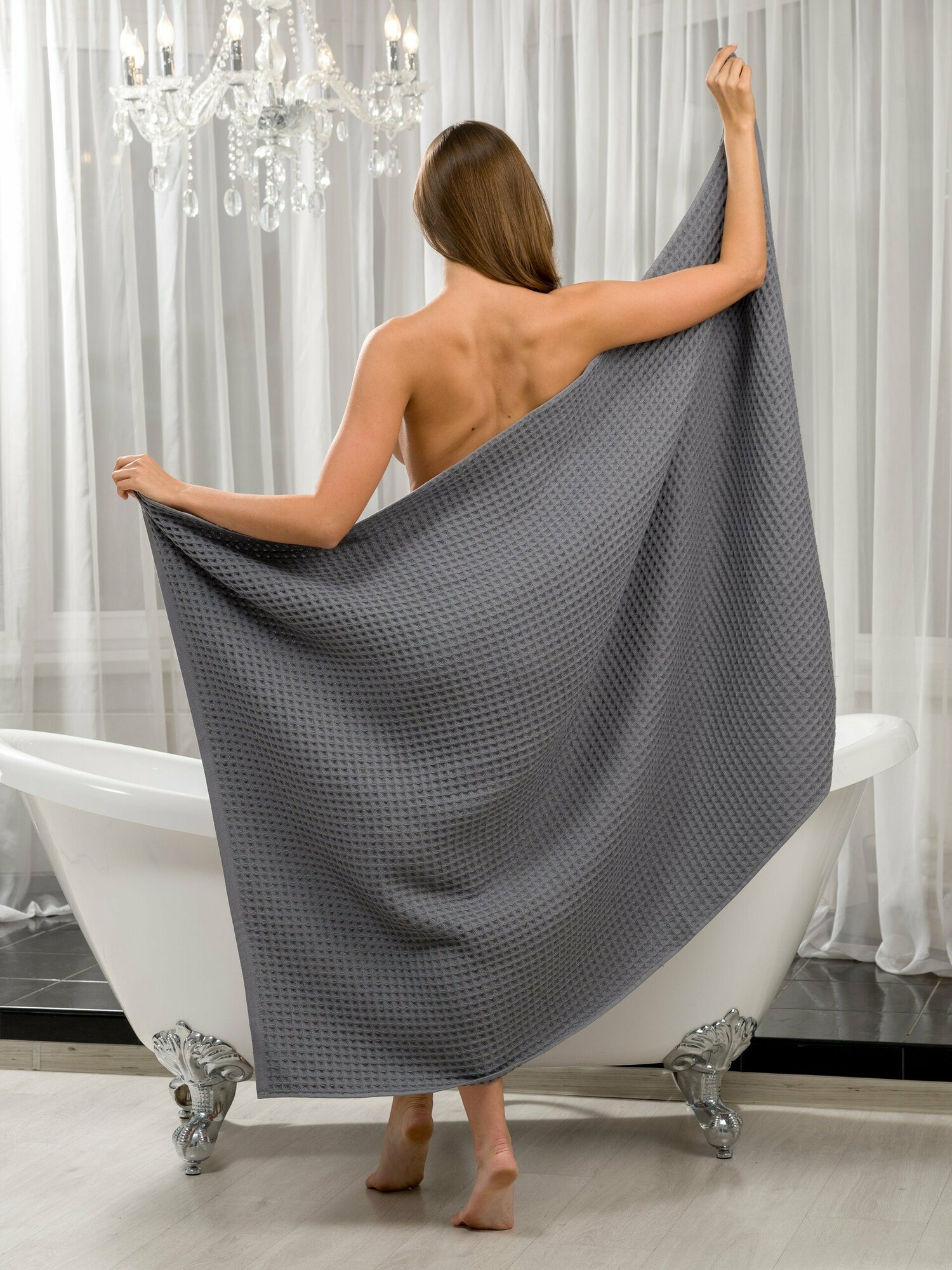 Купить Полотенце вафельное 100*150 серое BIO-TEXTILES банное домашнее пляжное 100% хлопок банная простынь