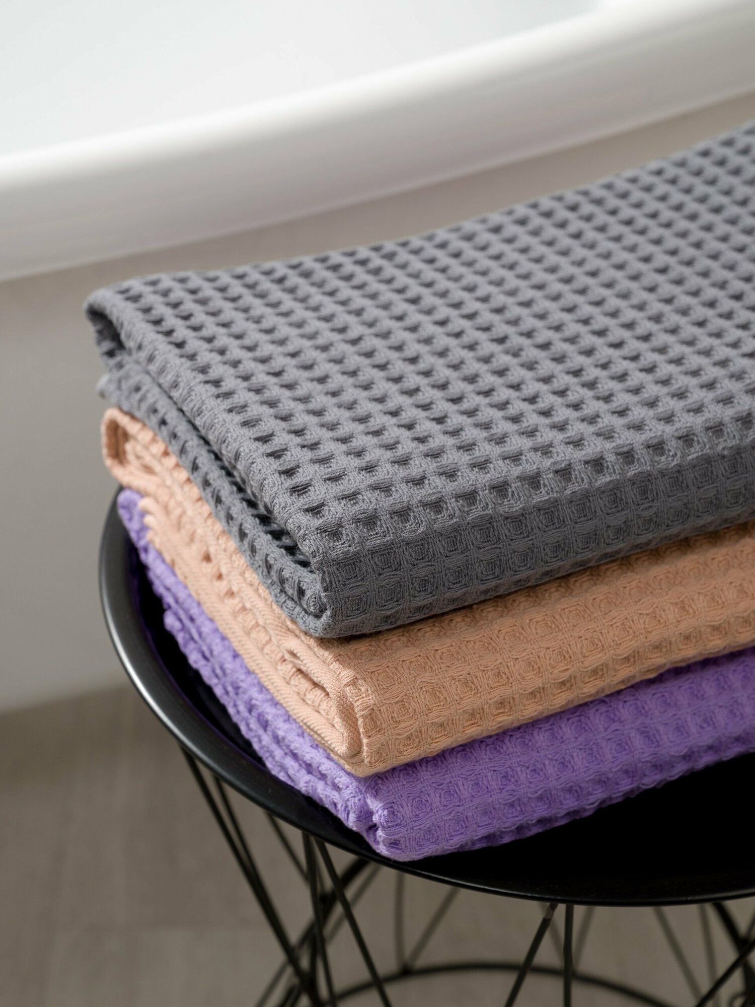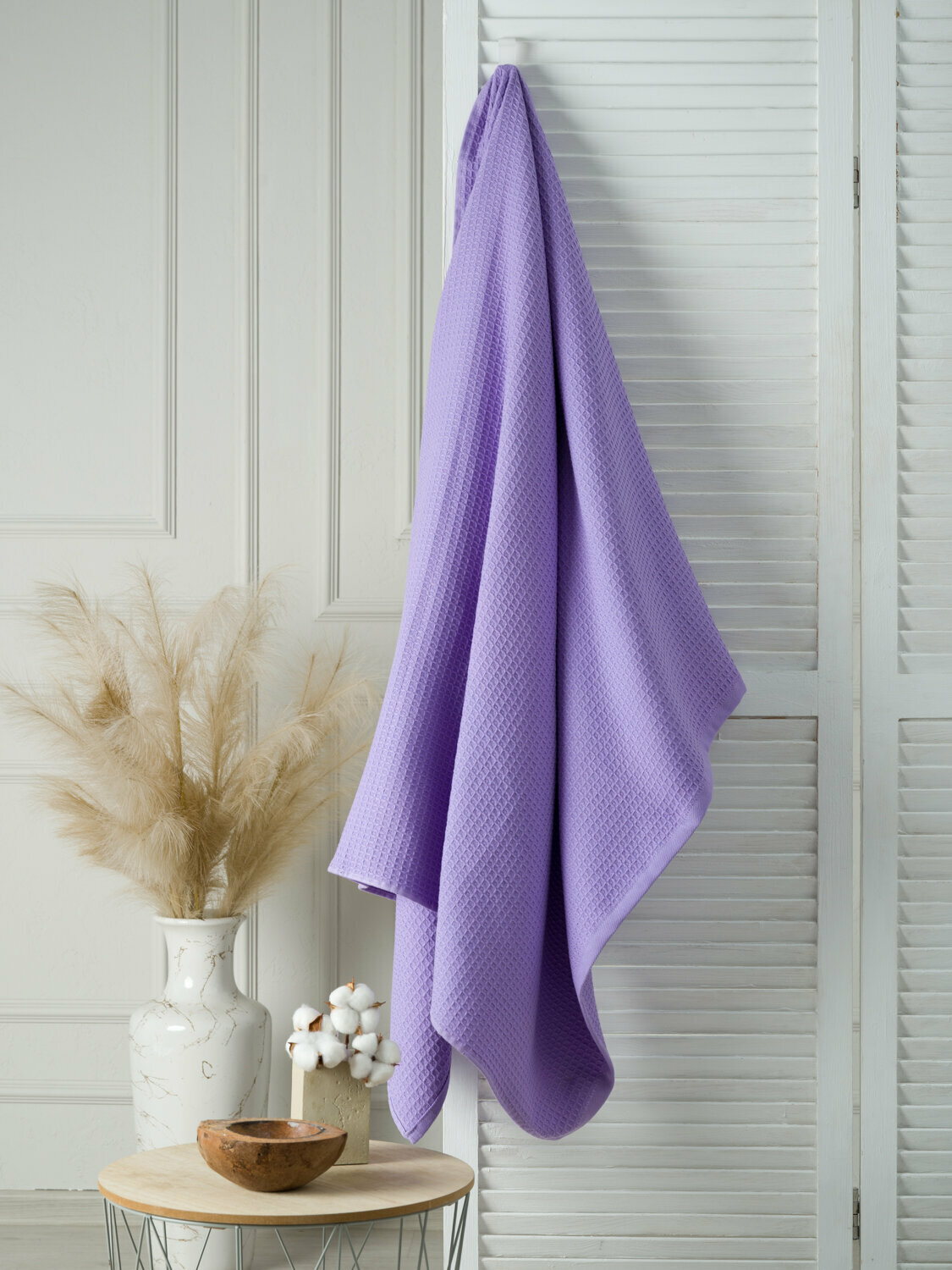 Купить Полотенце вафельное 100*150 сиреневое BIO-TEXTILES банное домашнее пляжное 100% хлопок банная простынь