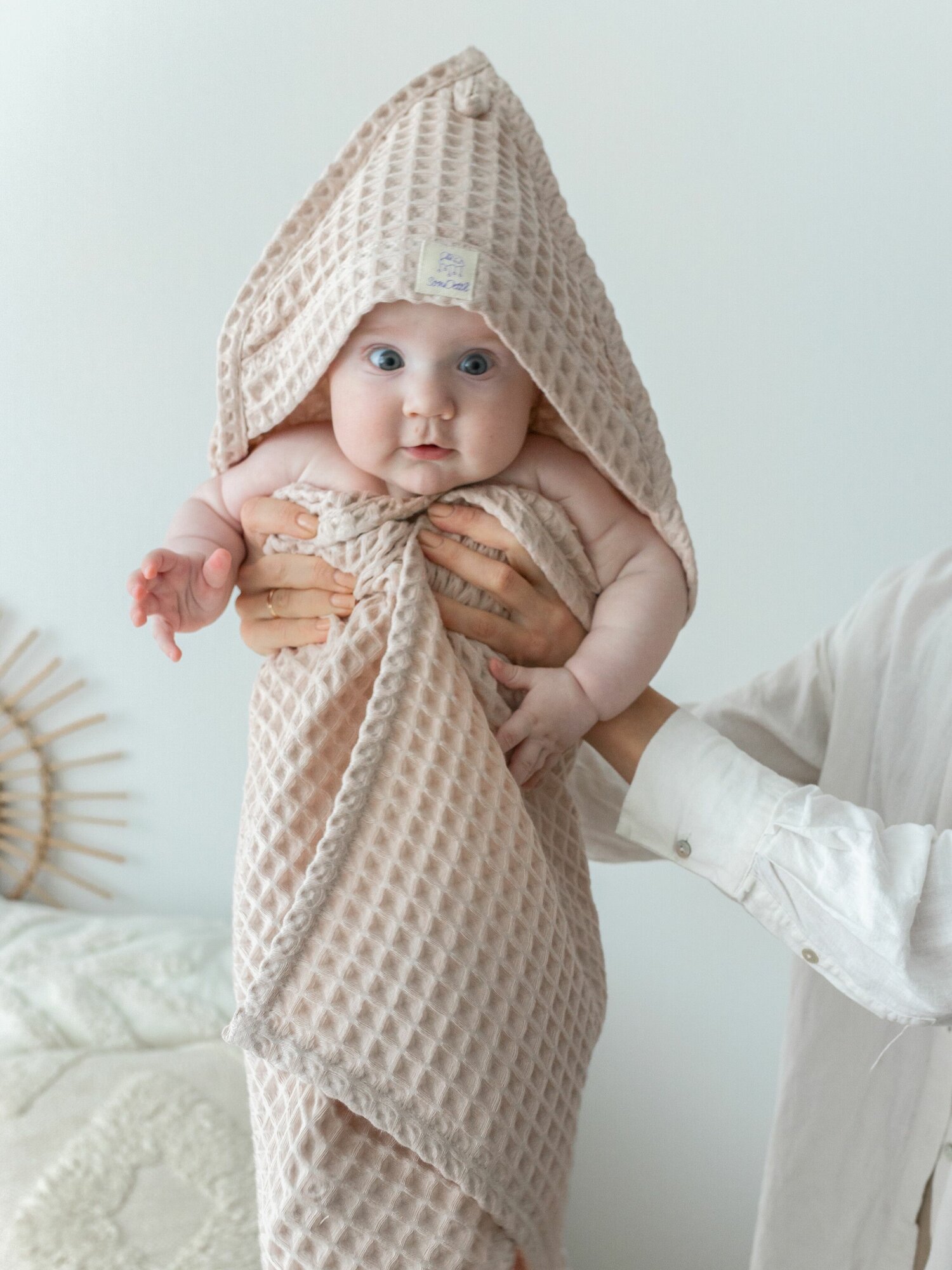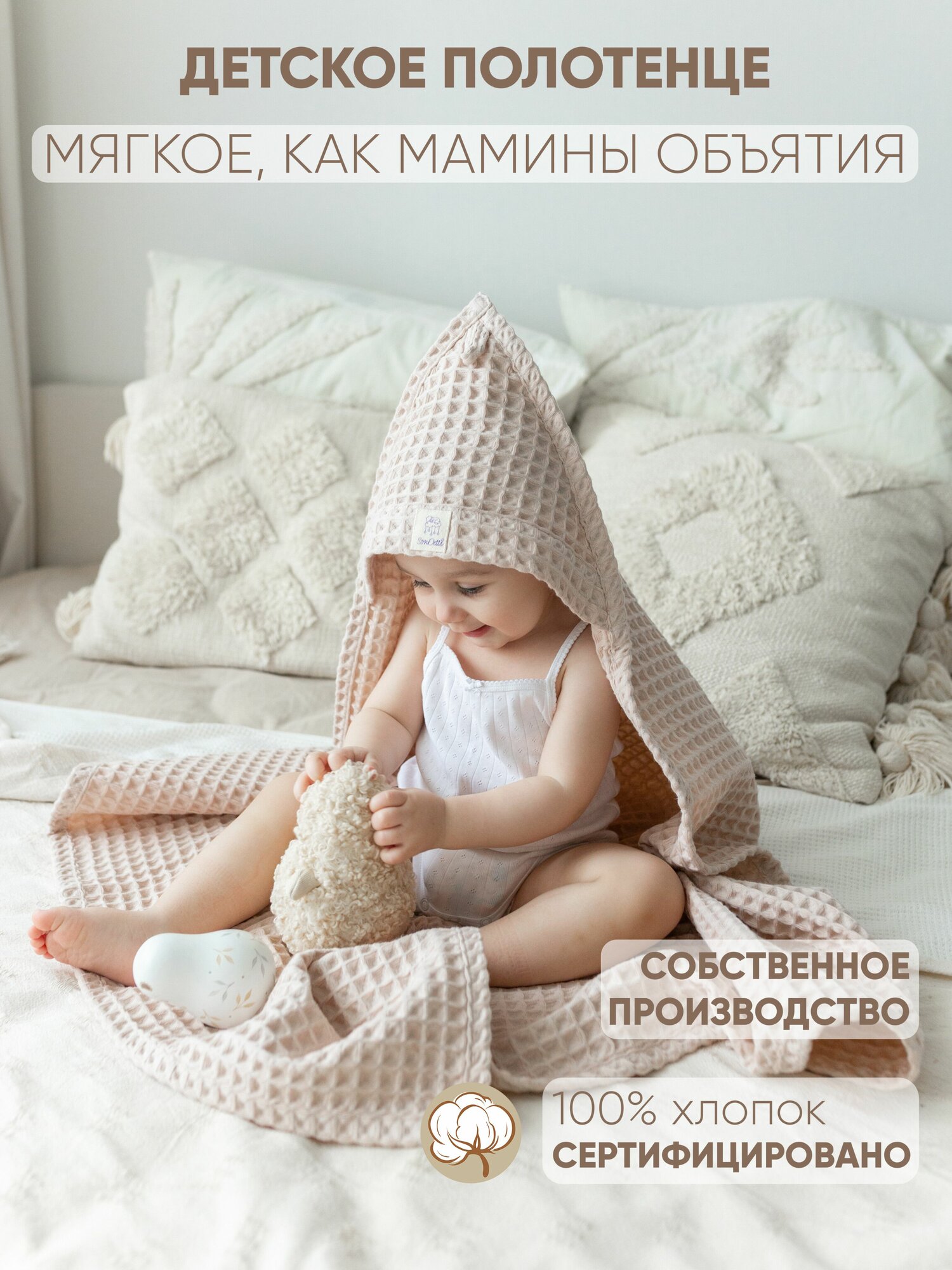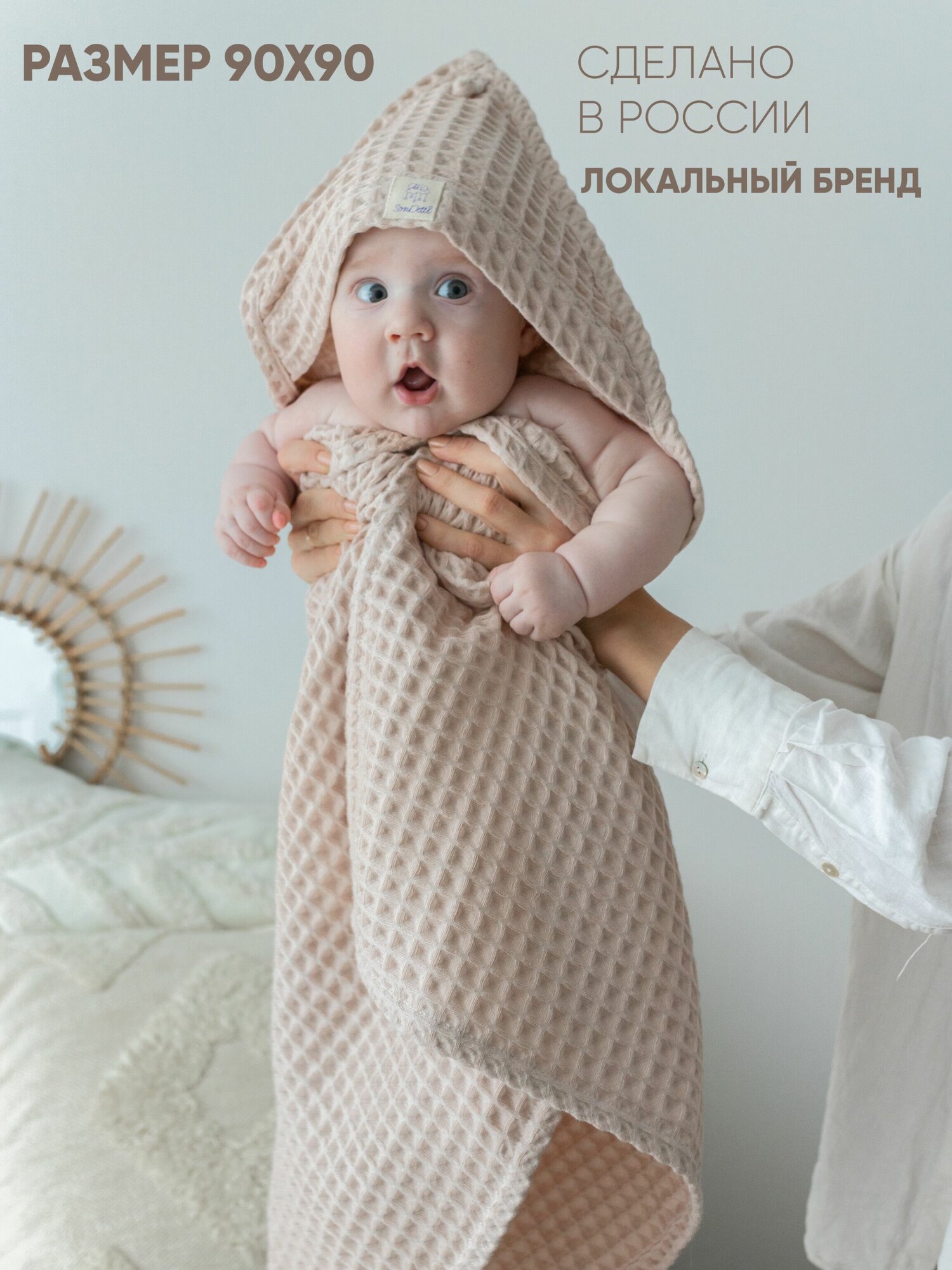 Полотенце для новорожденного Sondetti 90x90 см, детское с капюшоном и уголком, вафельное, мягкое интересное: