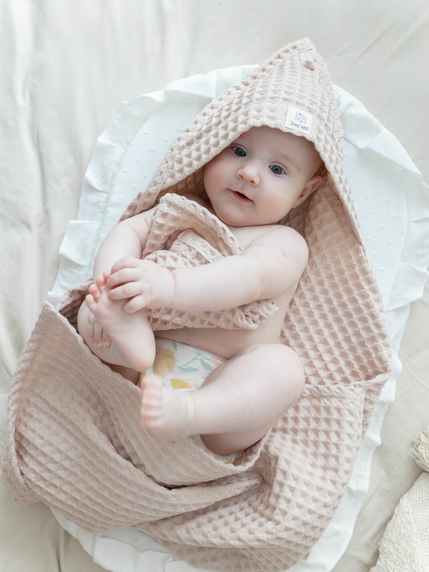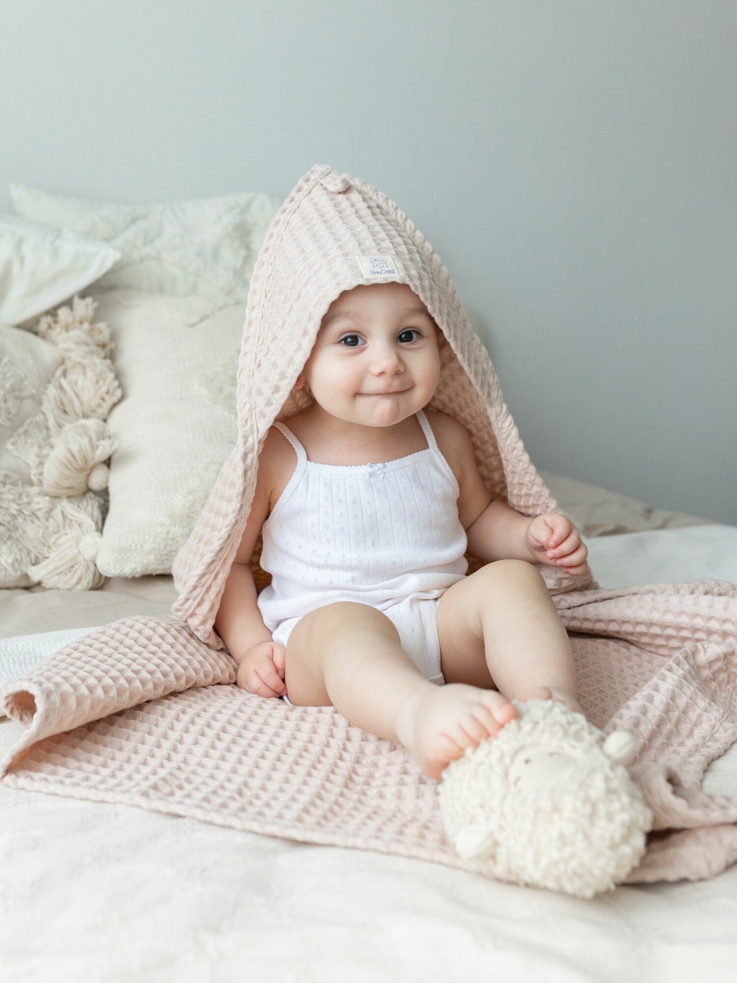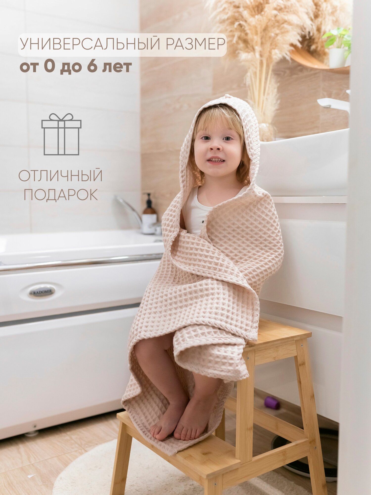 Полотенце для новорожденного Sondetti 90x90 см, детское с капюшоном и уголком, вафельное, мягкое интересное: