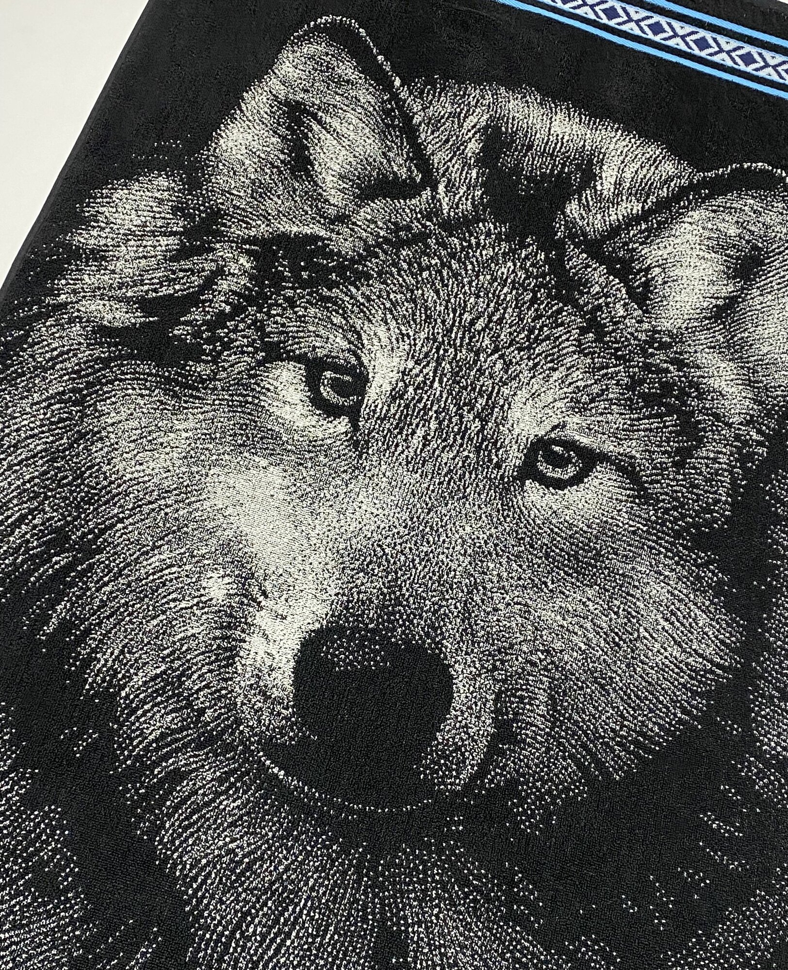Полотенце махровое банное большое для мужчины Волк 100 х 160 см