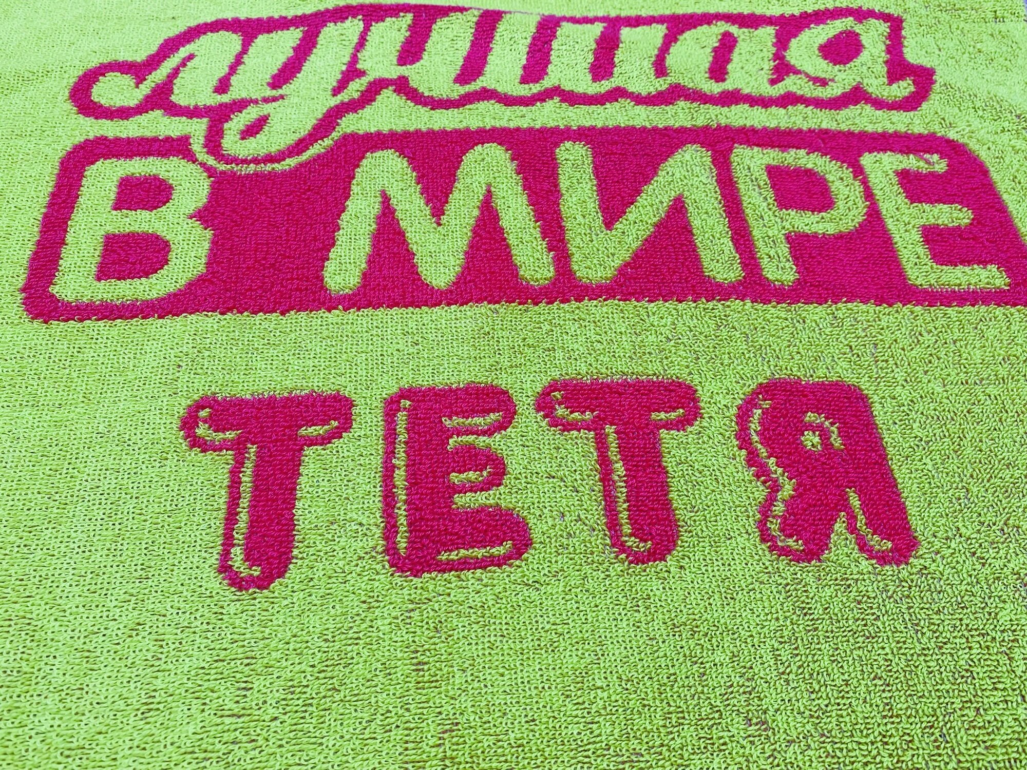 Купить Полотенце махровое в подарок Лучшей в мире Тете 50*90 см Салатово-Розовое