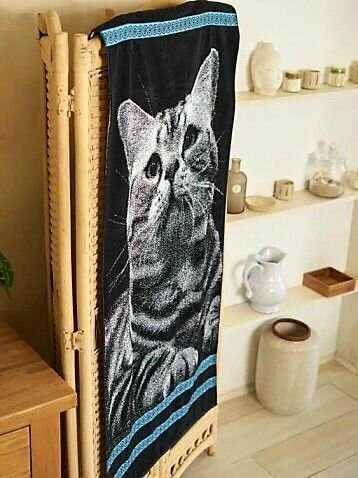 Полотенце банное Котик 3D с добби 70х140
